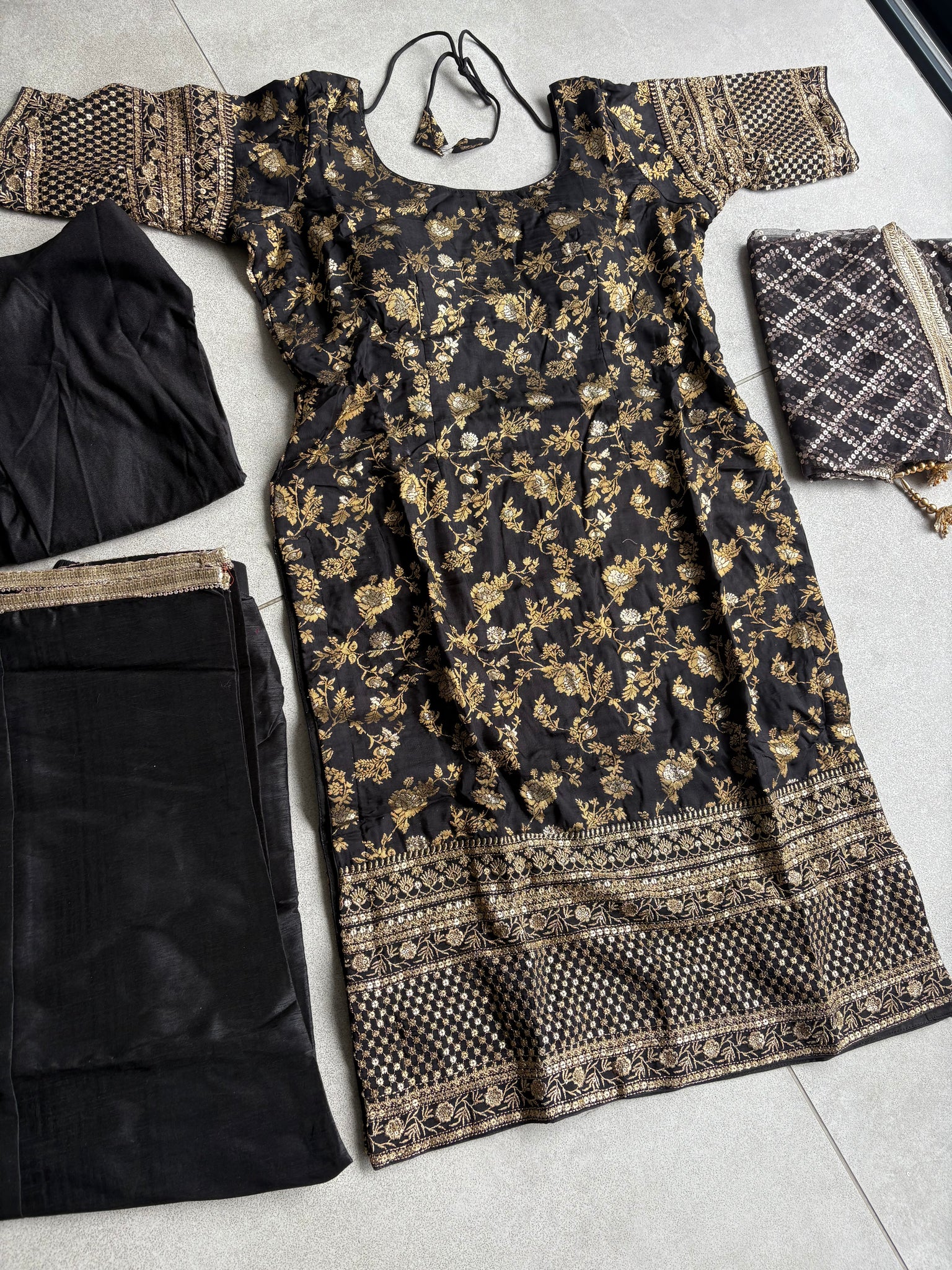 Salwaar bottoms in silk. Stretchy leggings also comes as a set as a 2nd option.