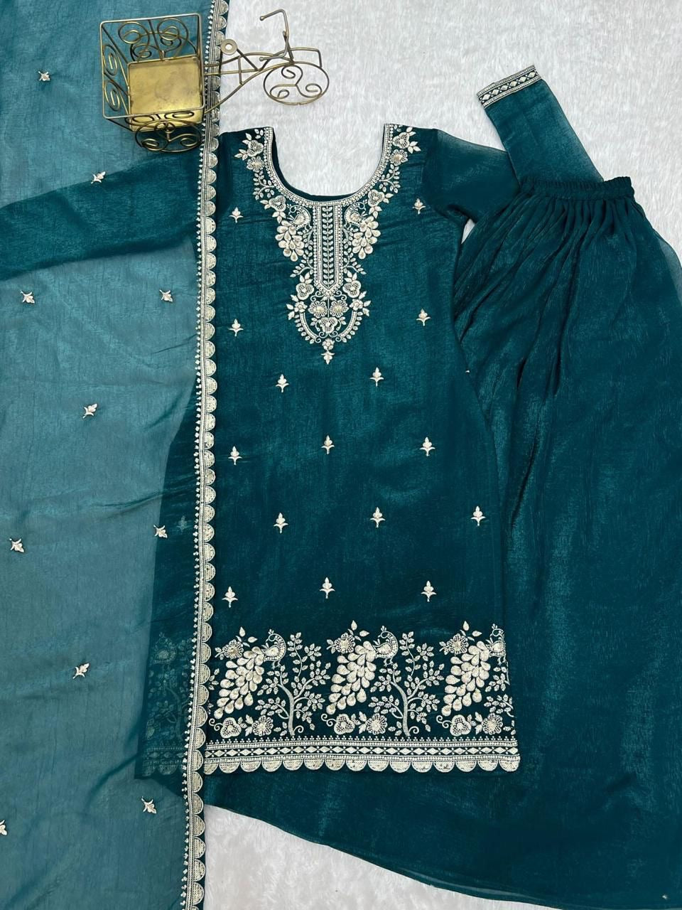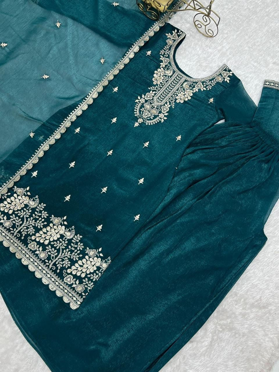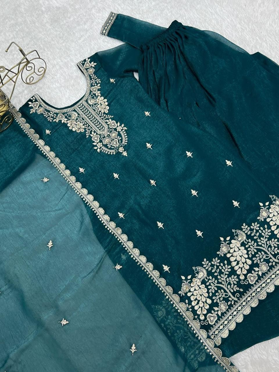 *TOPKURTA FABRIC*:👗HEAVY PURE SOFT CRUNCHY SILK FABRIC WITH FANCY EMBROIDERY SEQUENCE,THREAD AND JARI WORK