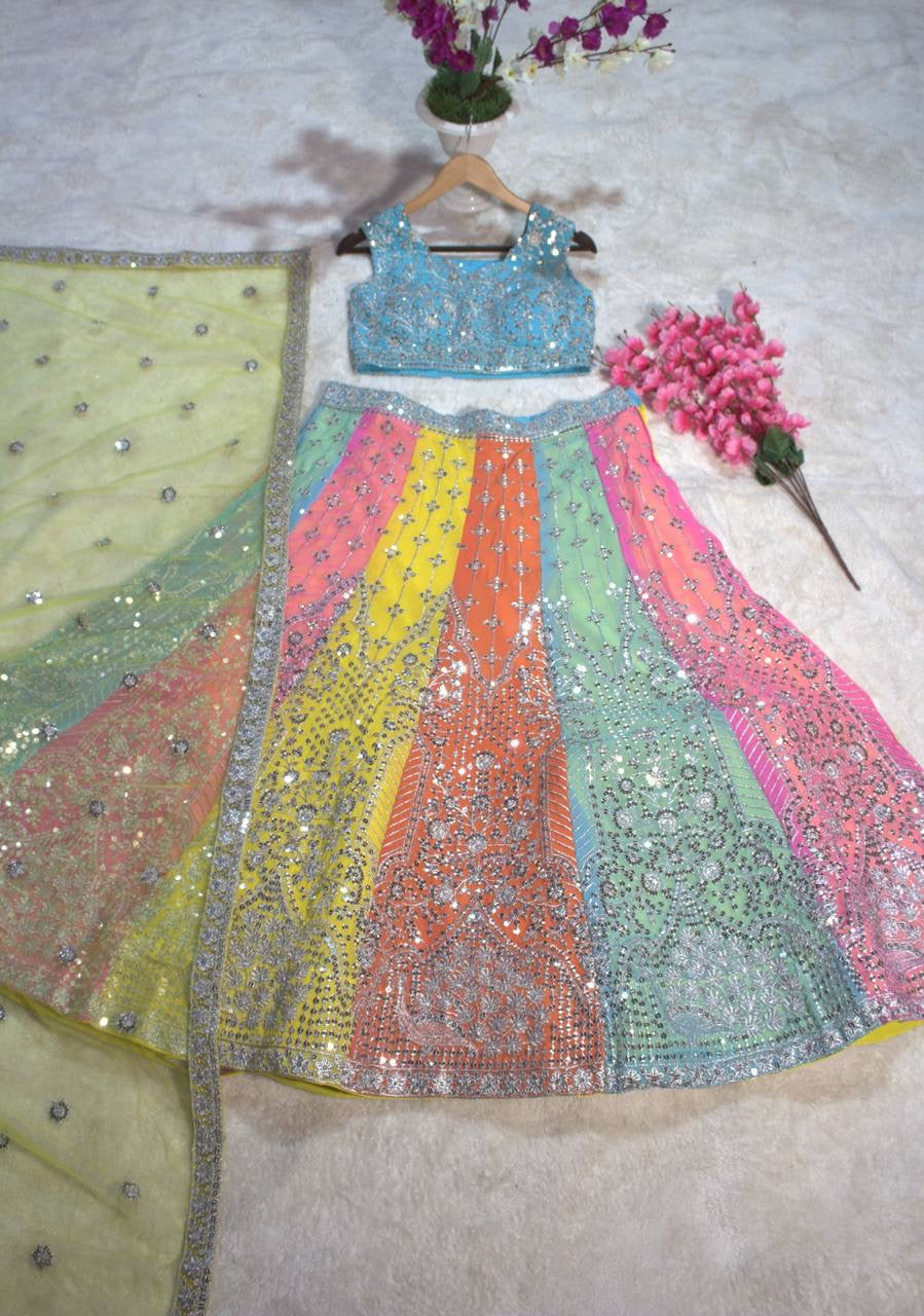 Work : Sequins Embroidered With Lace Border
