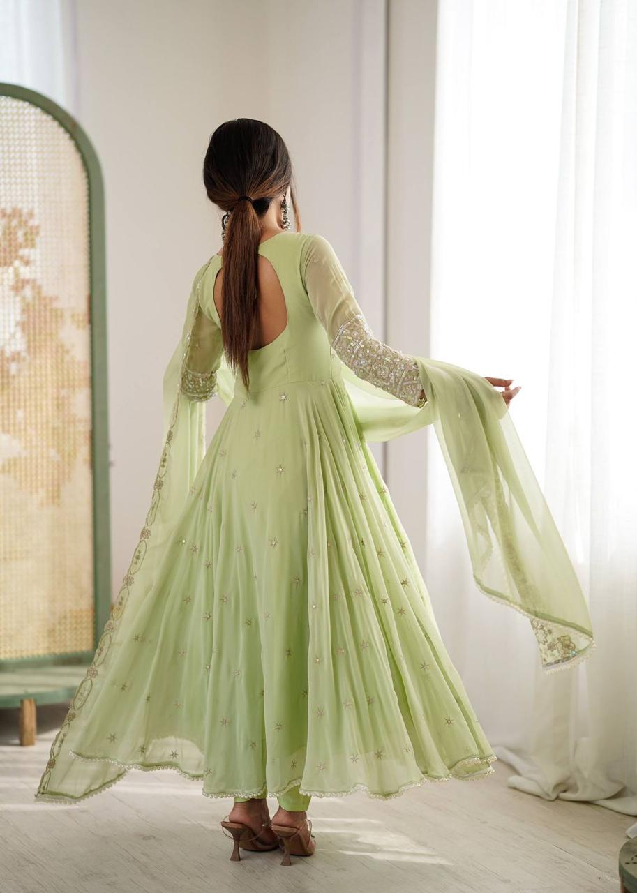 Rainbow sequins Georgette Anarkali in light green (special offer)