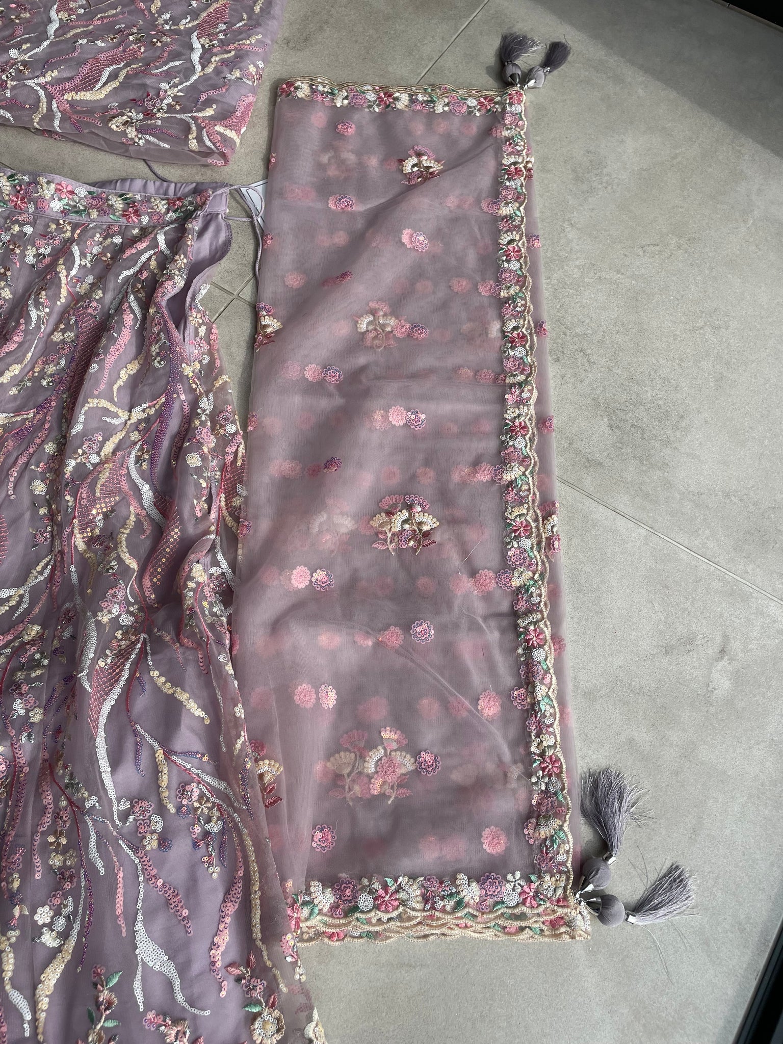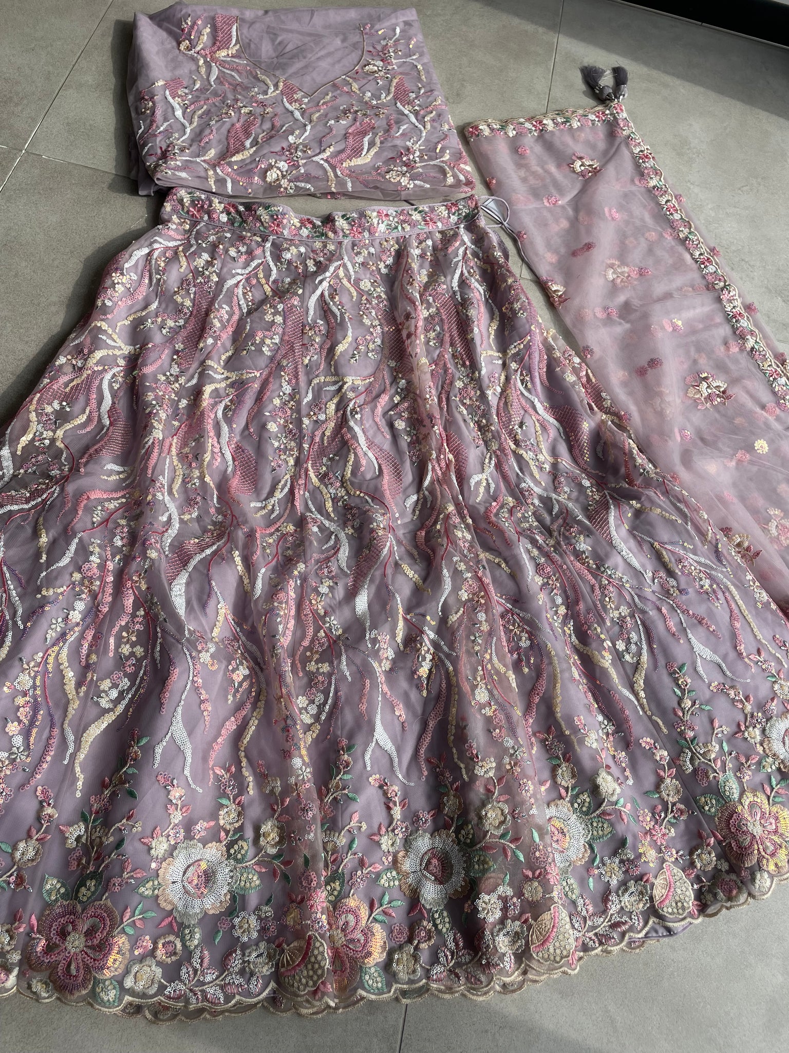 Pastel Lavender circular net Lehenga
