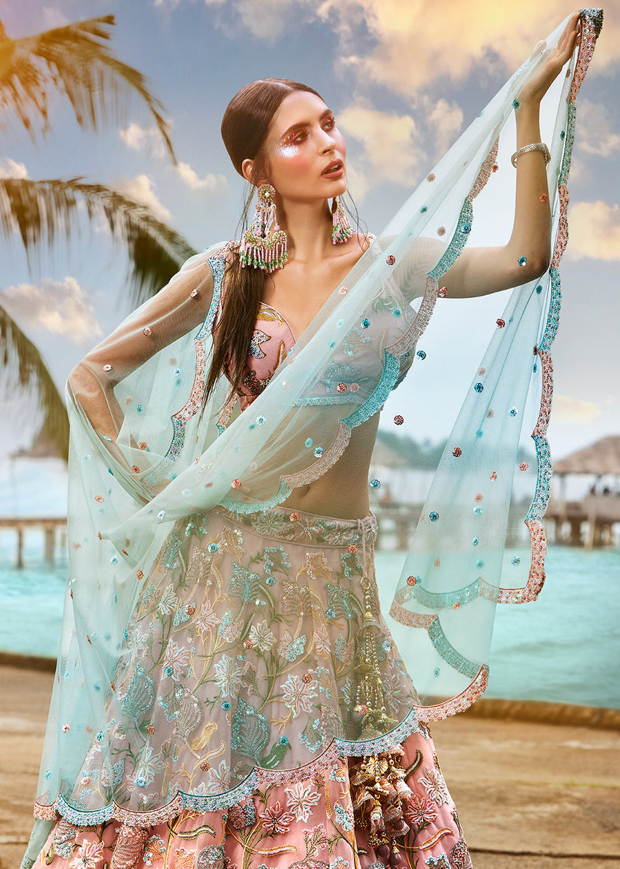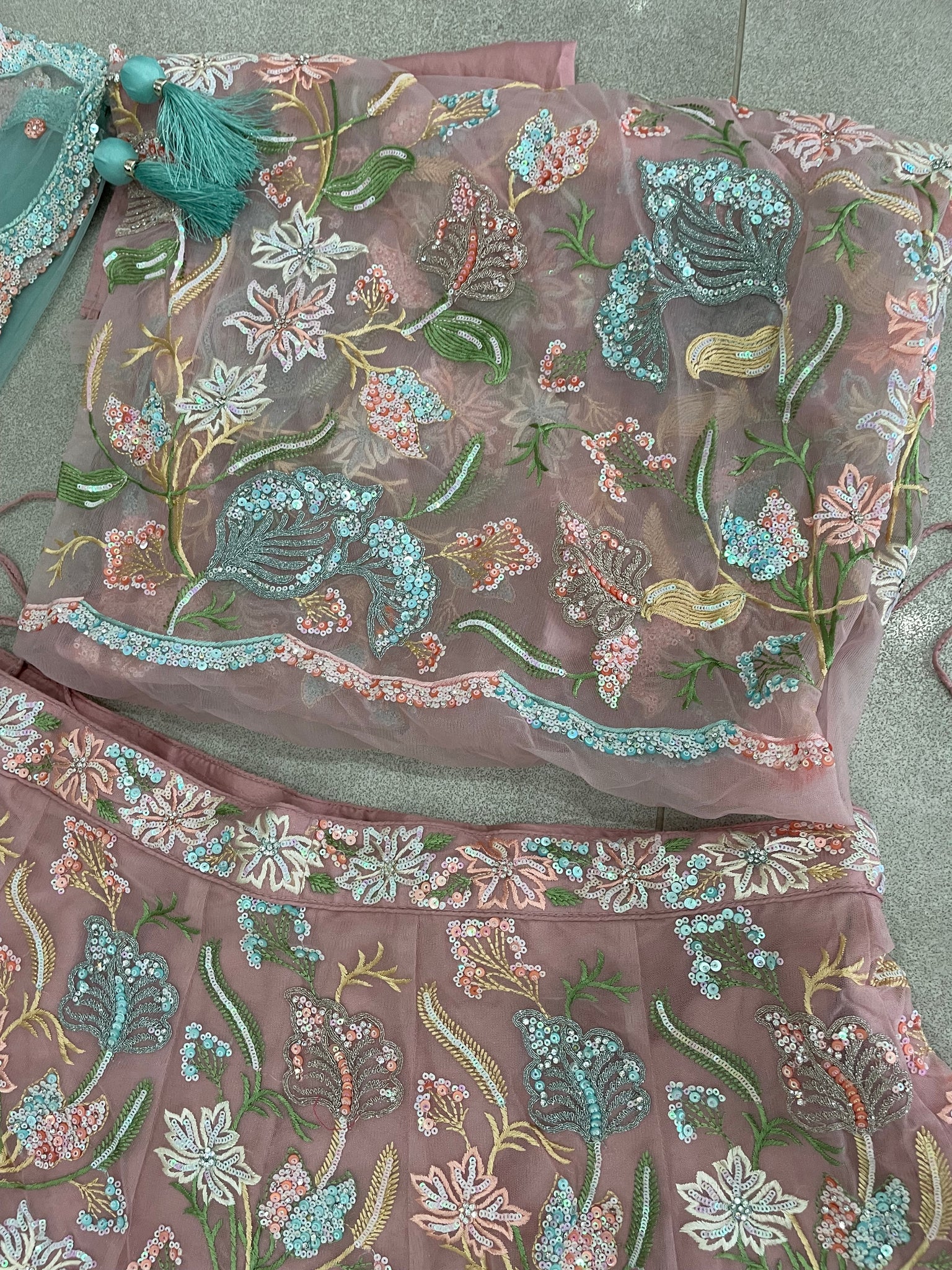 Semi stitched to fit up to 40 waist and bust. Skirt has cancan inner lining.