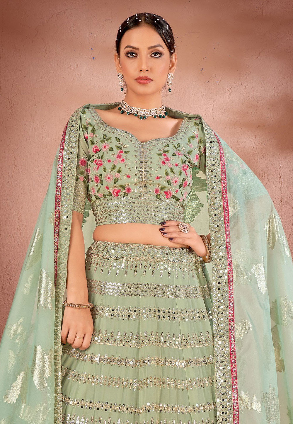 Fabric Details - georgette . Work : Thread & Sequins Embroidery Type : Semistitched.