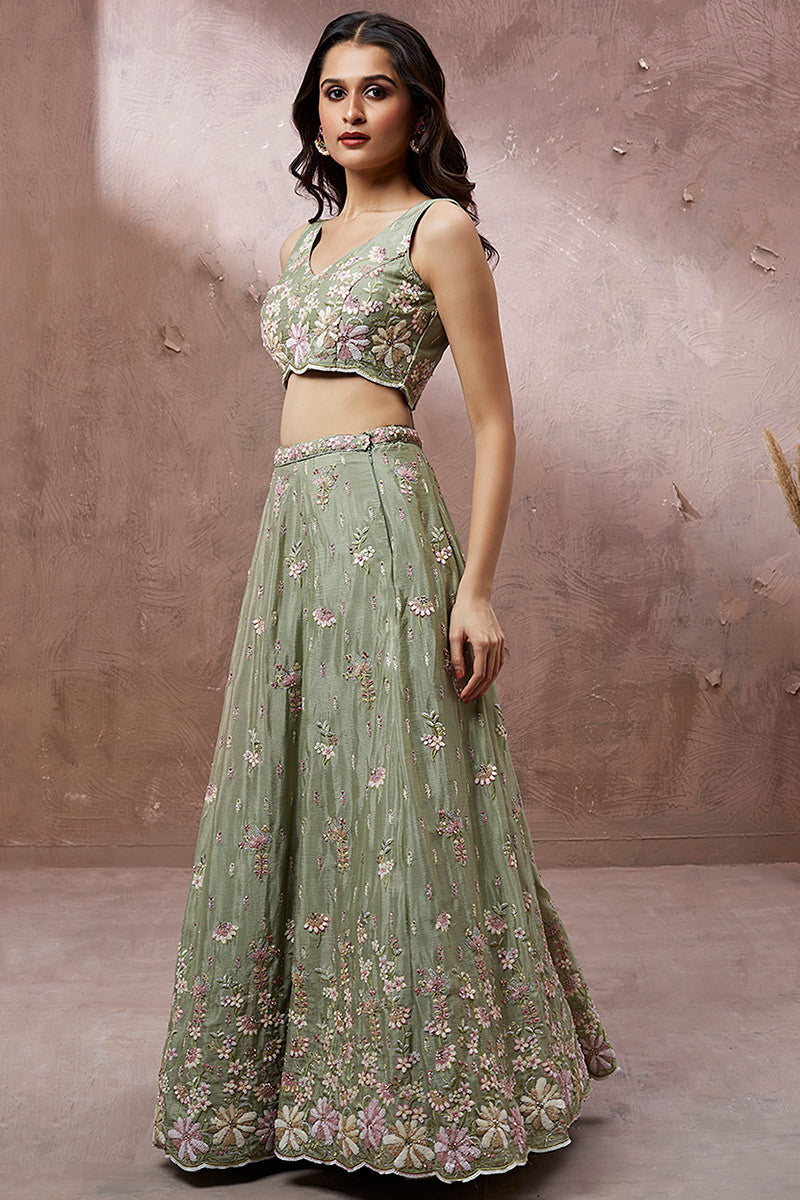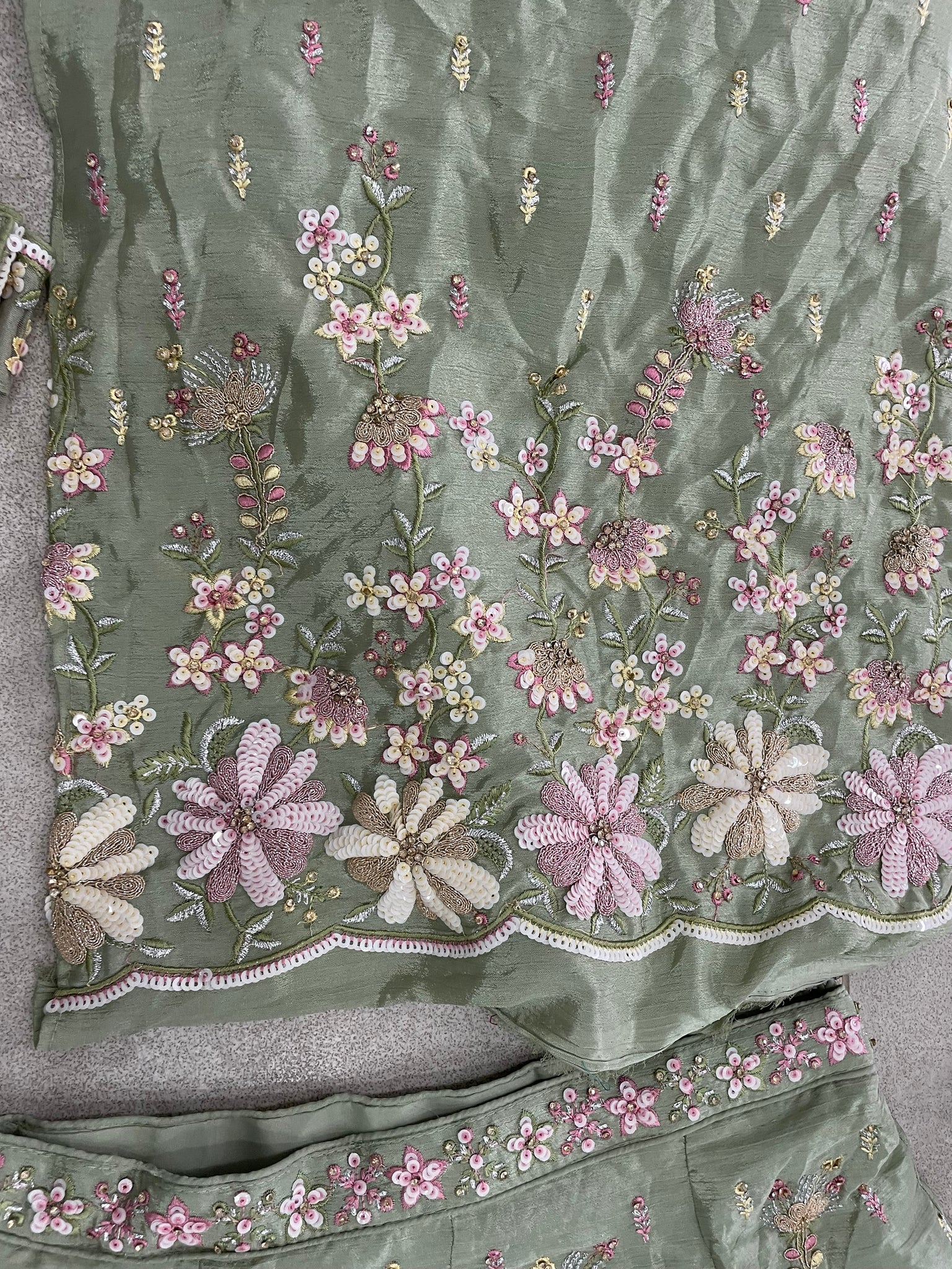 Semi stitched to fit up to 40 waist and bust. Skirt has cancan inner lining.