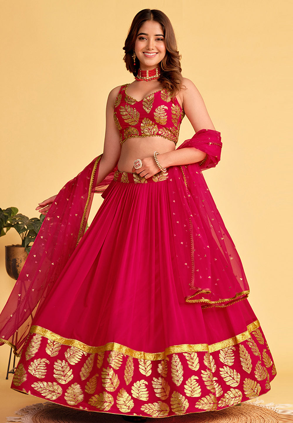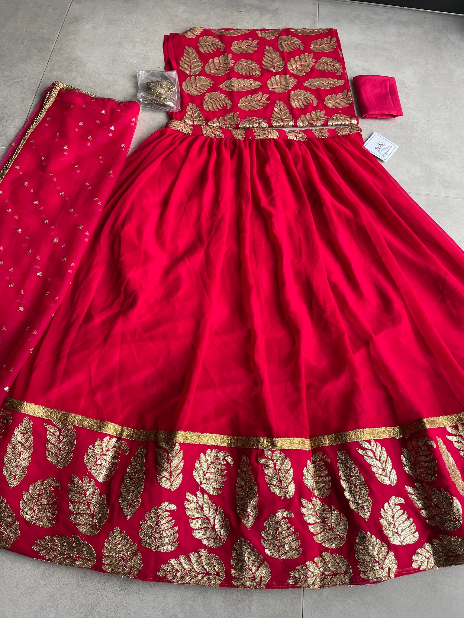georgette blouse piece and skirt, with net dupatta and beaded border