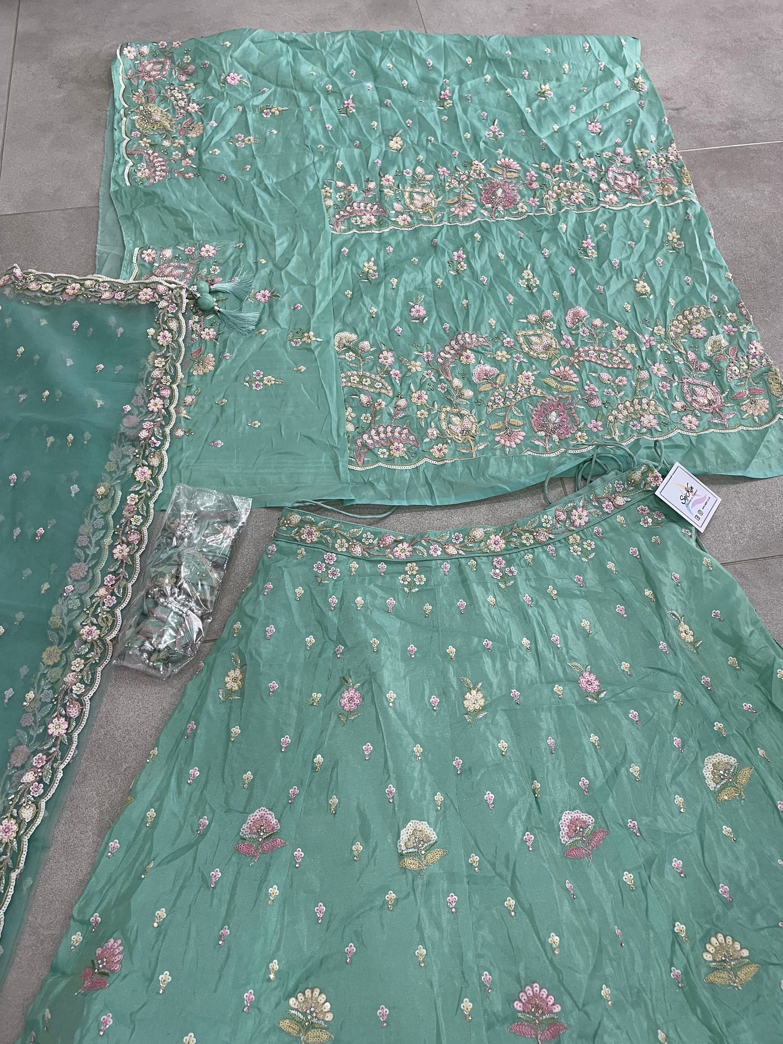 Semi stitched to fit up to 40 waist and bust. Skirt has cancan inner lining.