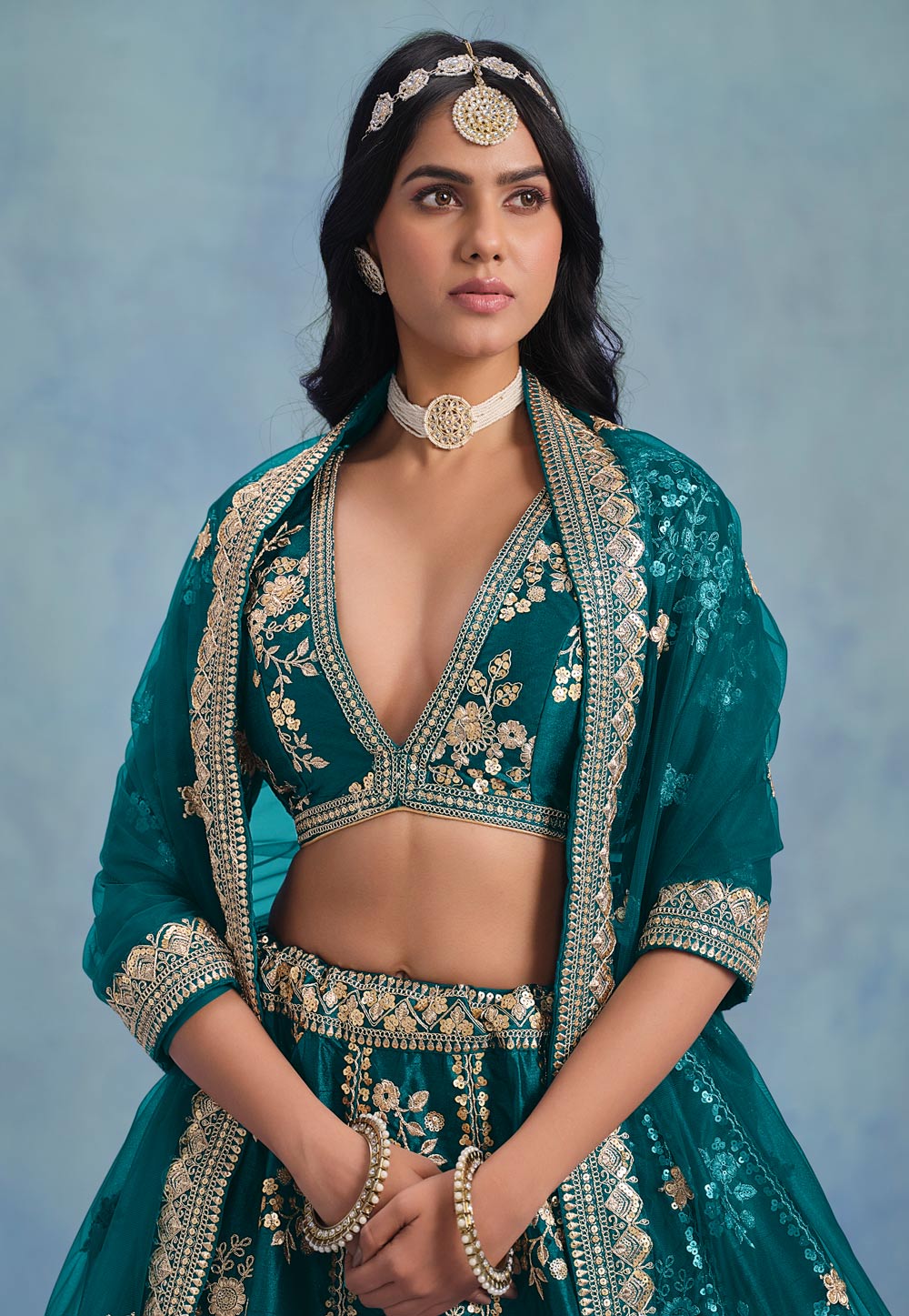 *Lehenga Fabric : Art Silk With Heavy Thread & Sequins Work (Unstitched)*