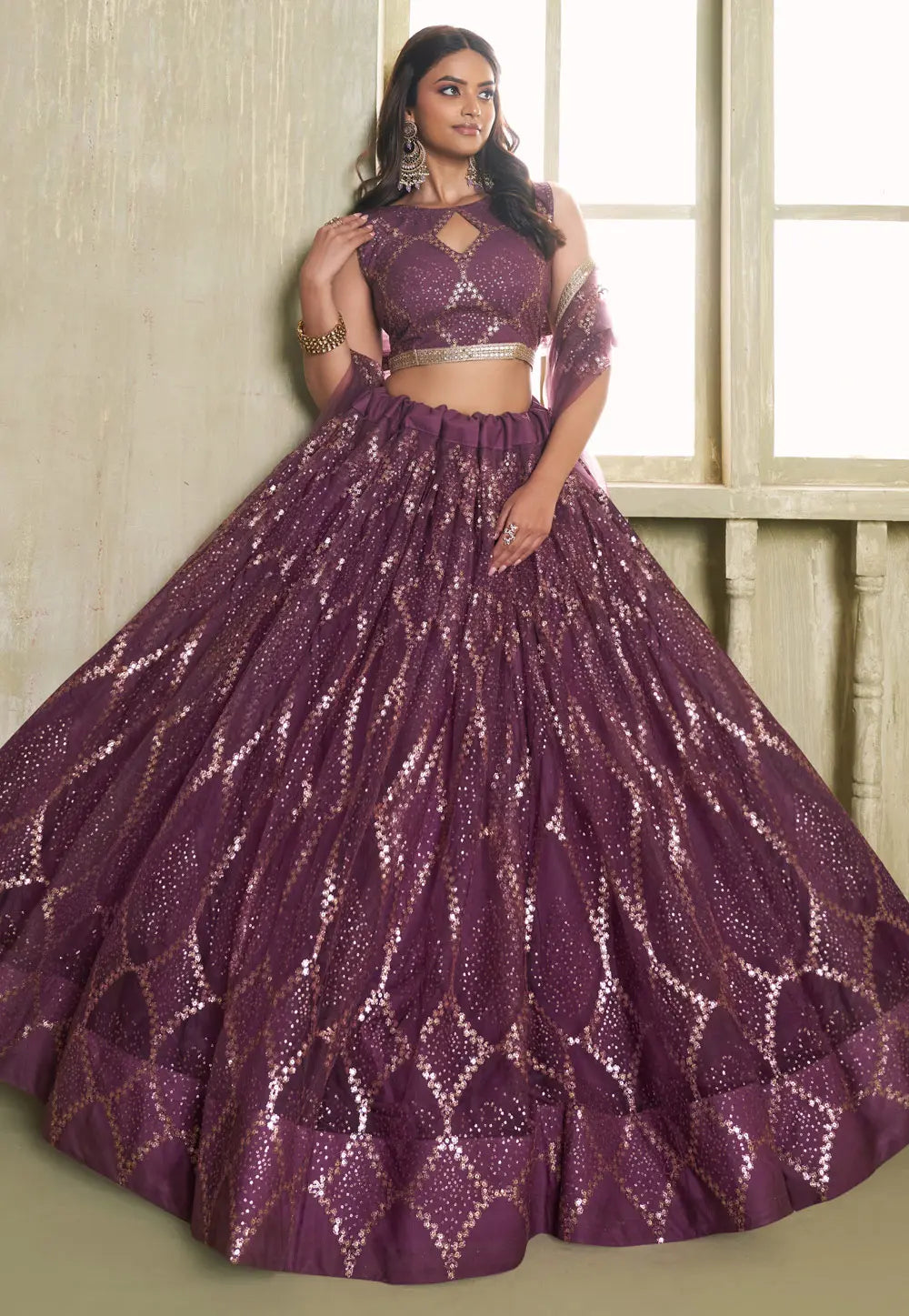 Wine sequins Lehenga