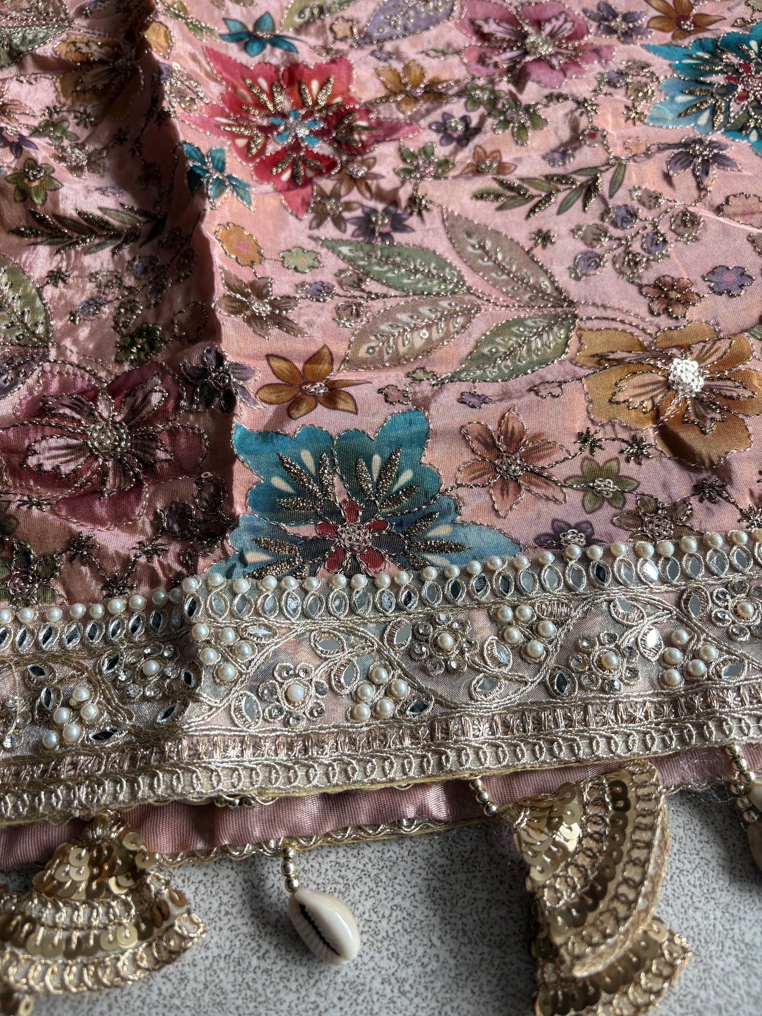 Georgette dupatta with gold border.