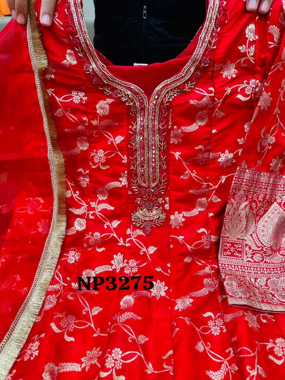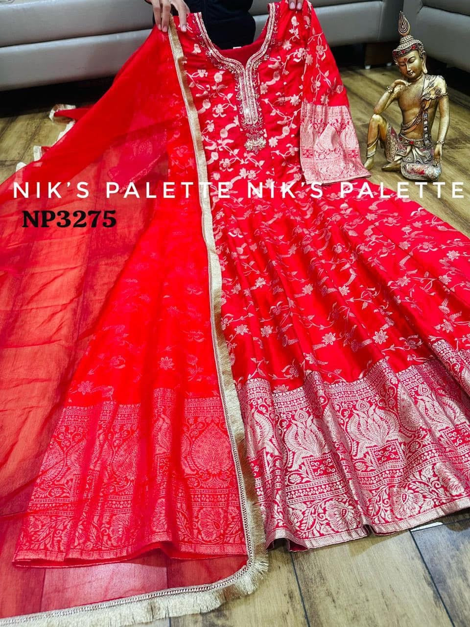Niks collection - red banarasi silk anarkali (plus size 54”)