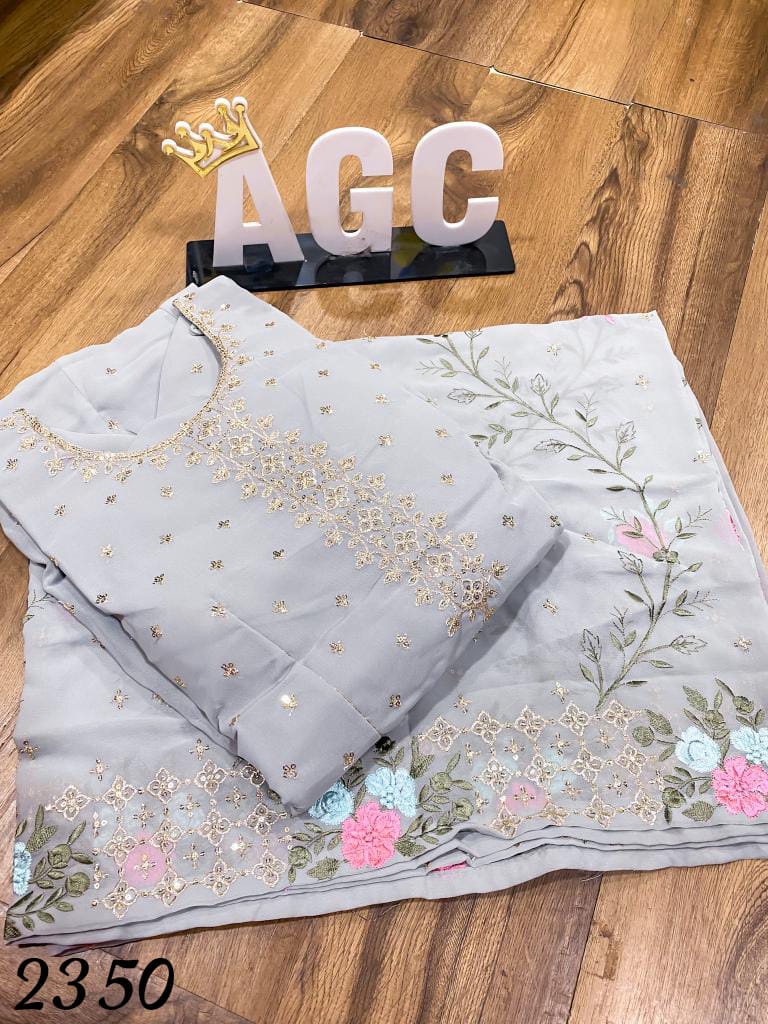 Premium Georgette gown detailed with sequence work all over paired with Georgette duppata with beautiful embroidery all over