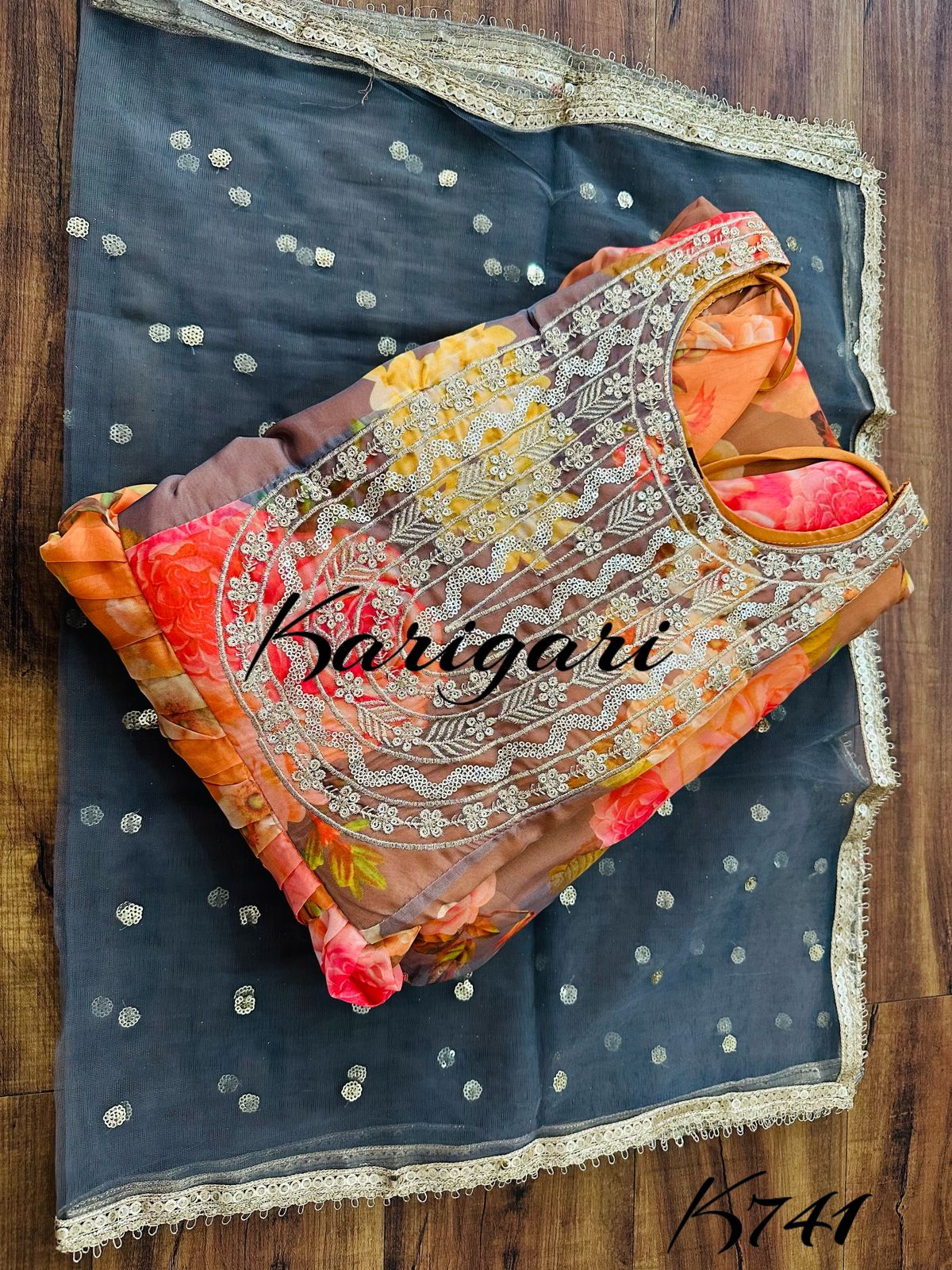 Premium floral collection in organza fabric with zari embroidery and sequins work…