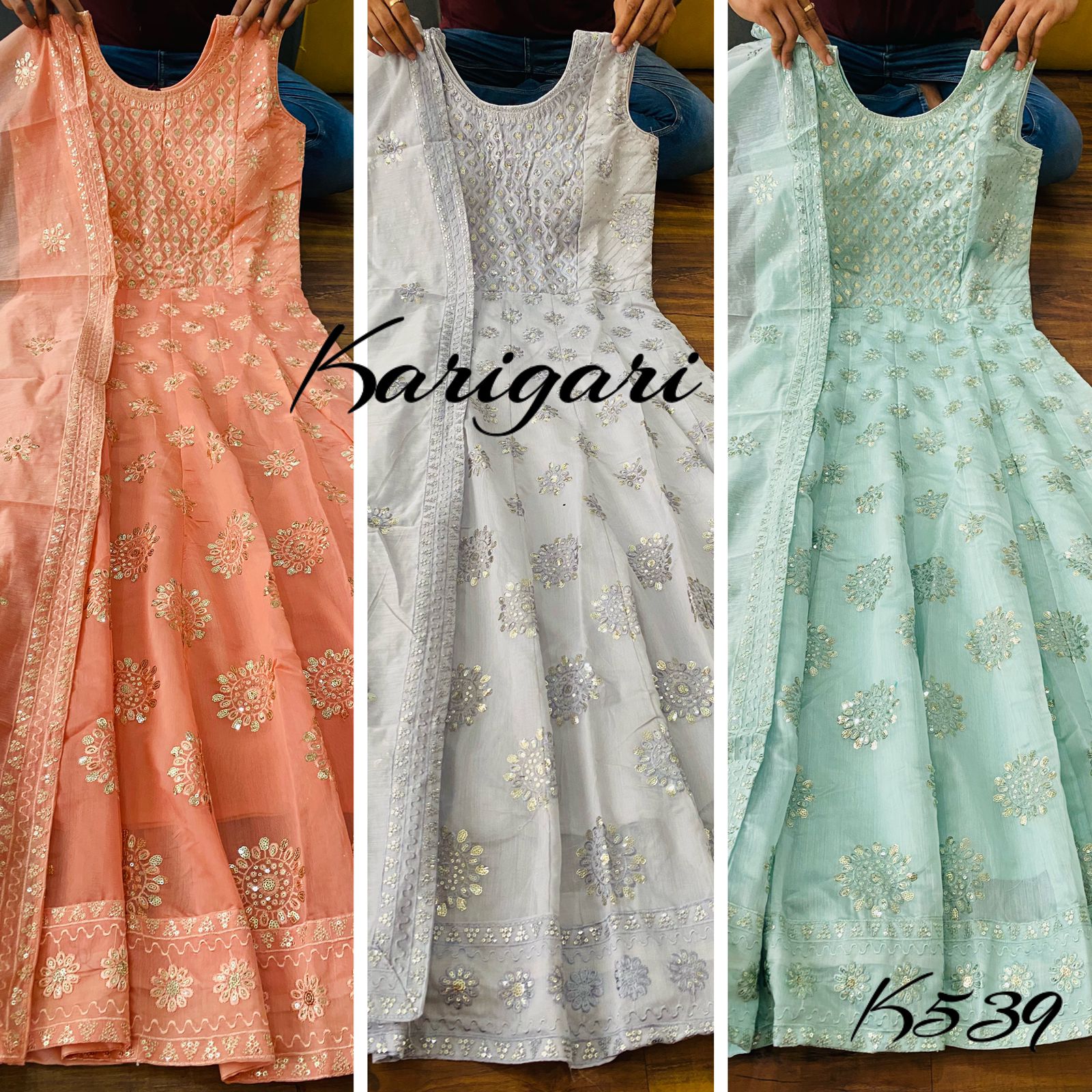 Premium chanderi gown paired up dupatta and full sleeves attached.