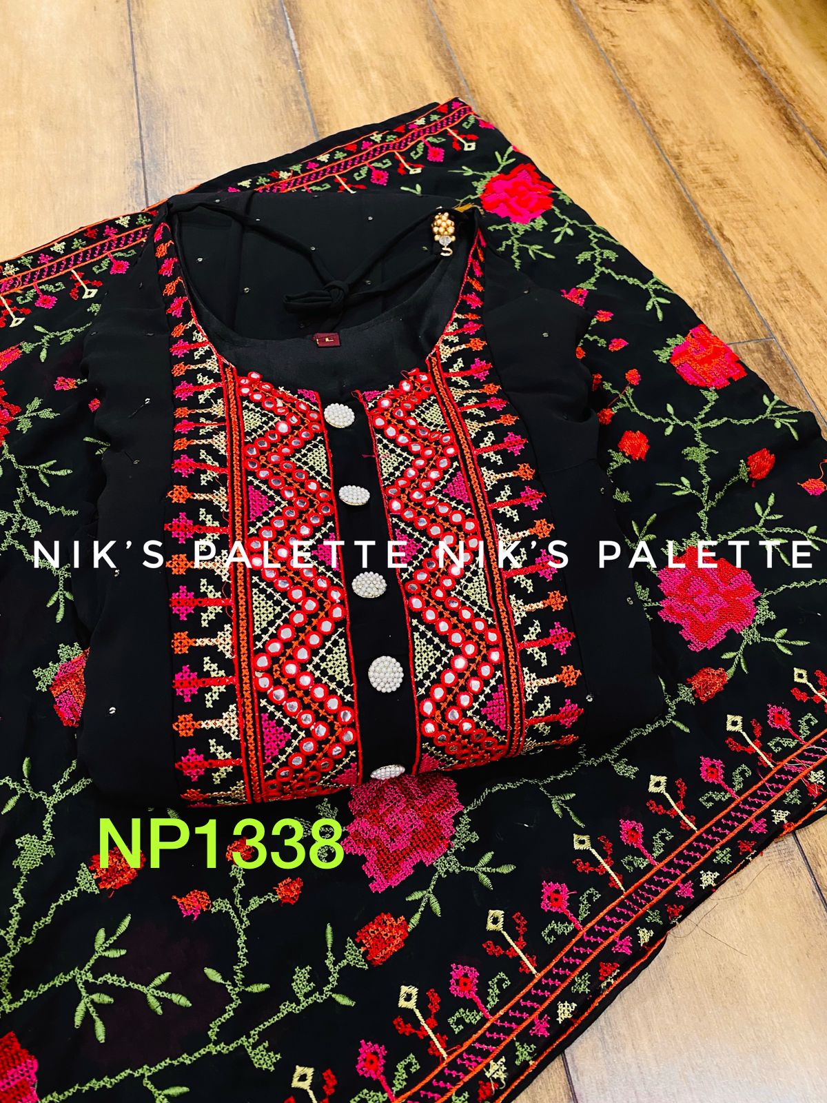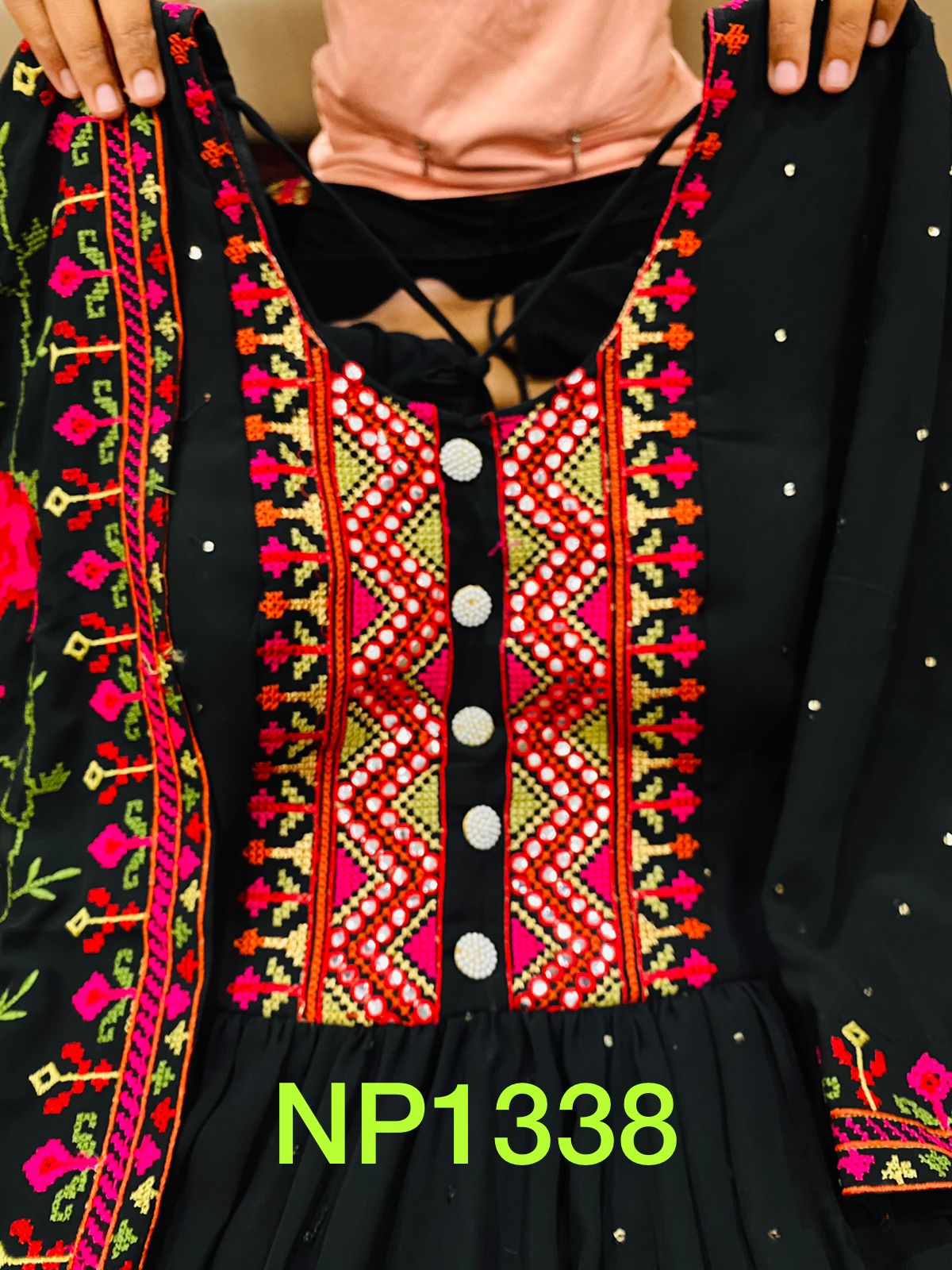 Premium Georgette tired pattern gown detailed with beautiful cross stitch embroidery on yoke & sleeves paired with Georgette duppata with cross stitch embroidery all over ....