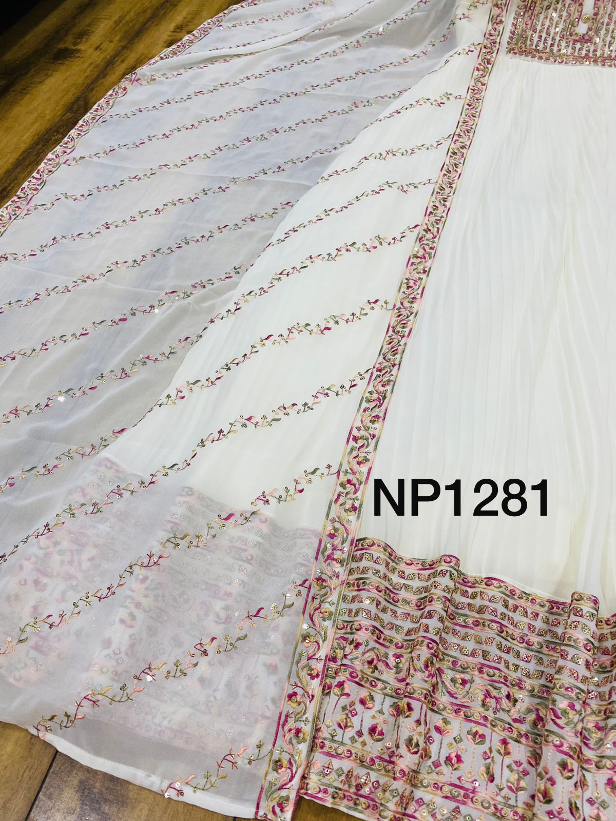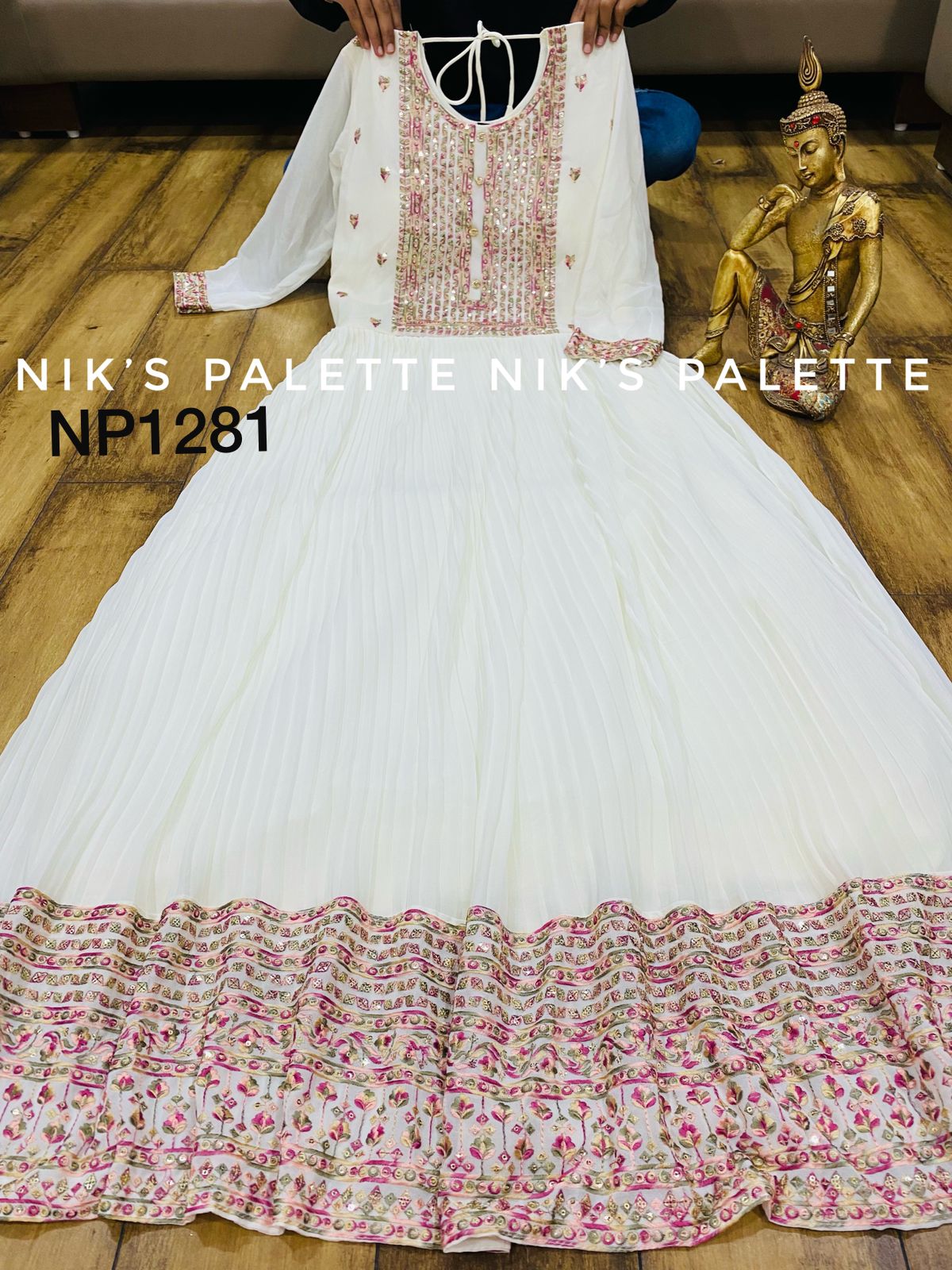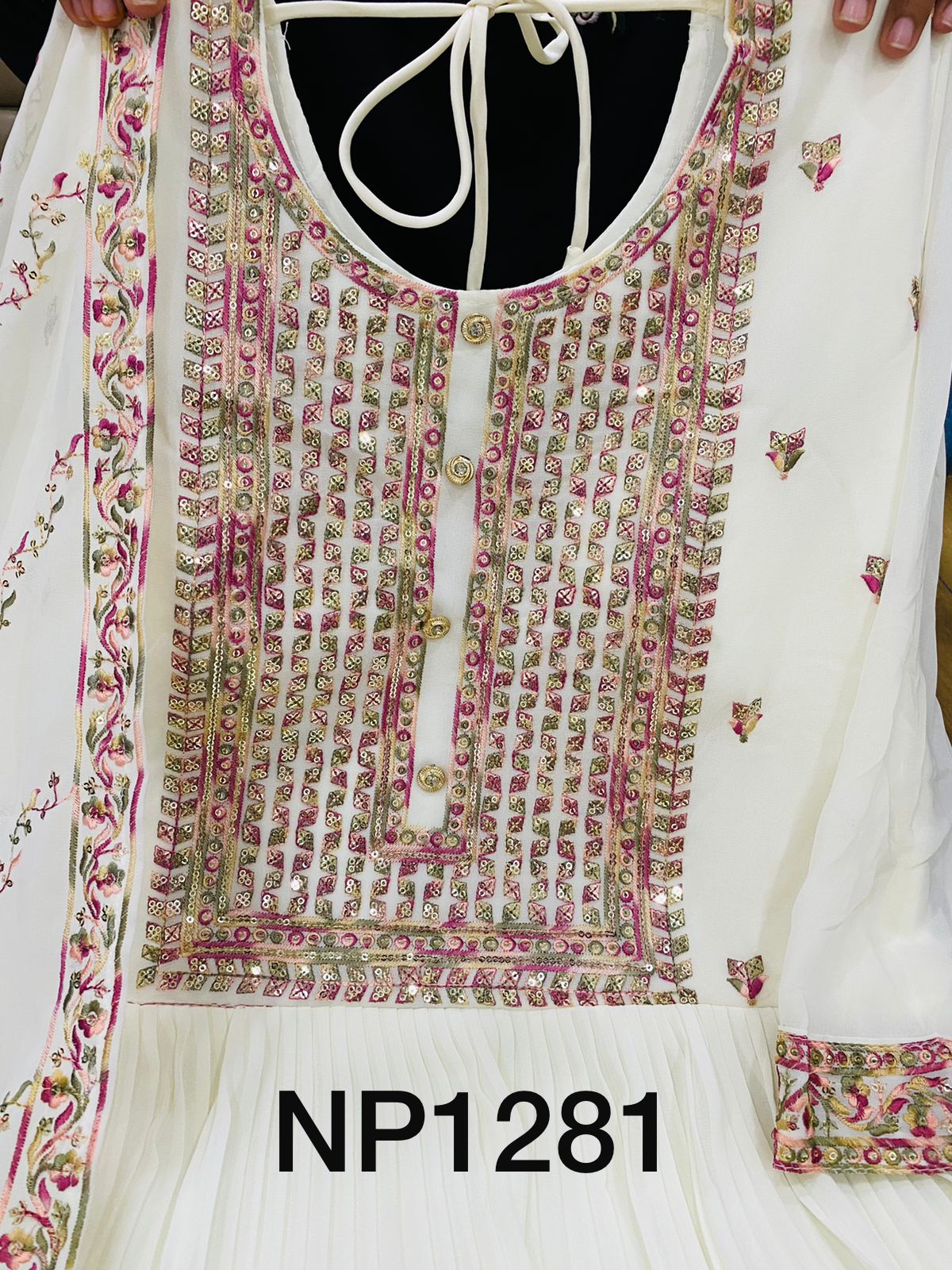 Premium Goergette pleated Heavy Gown with Beautiful sequins Embroidery on yoke and Daman...