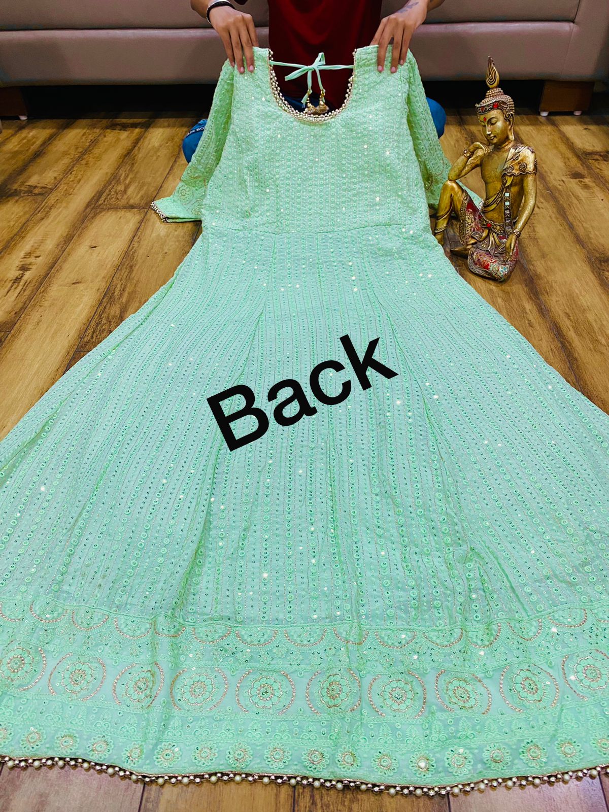 Premium *Rich pastel colour* *Goergette* all over heavy sequins front & back work ananrkali gown with full lining & cancan attached