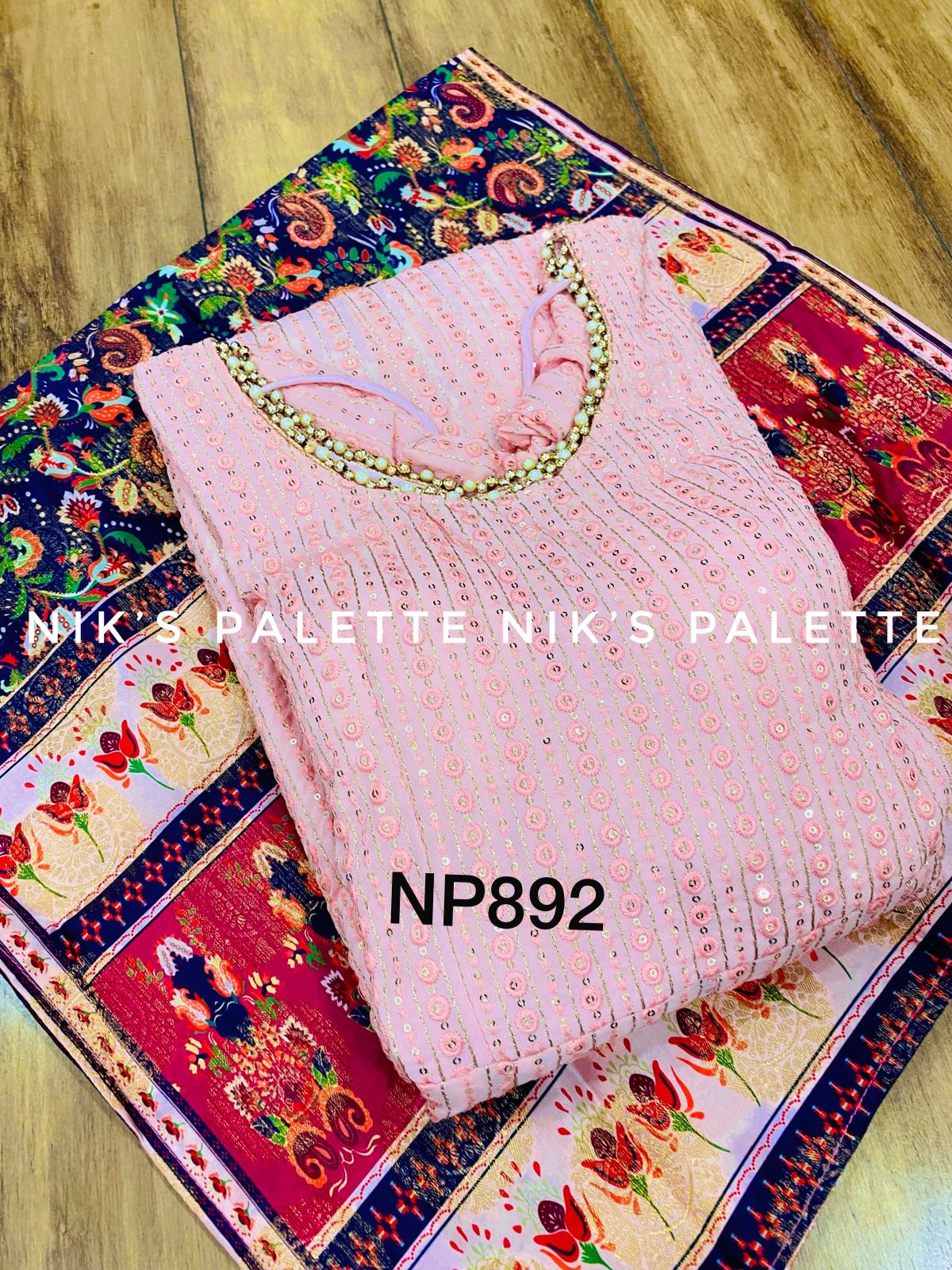 Premium *Rich pastel colour* *Goergette* all over heavy sequins front & back work ananrkali gown with full lining & cancan attached