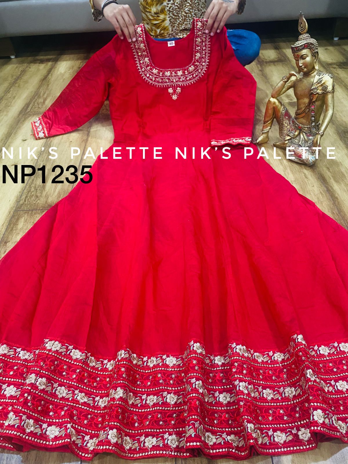 Premium *chanderi silk* Gown with Beautiful sequins Embroidery on yoke and Daman...