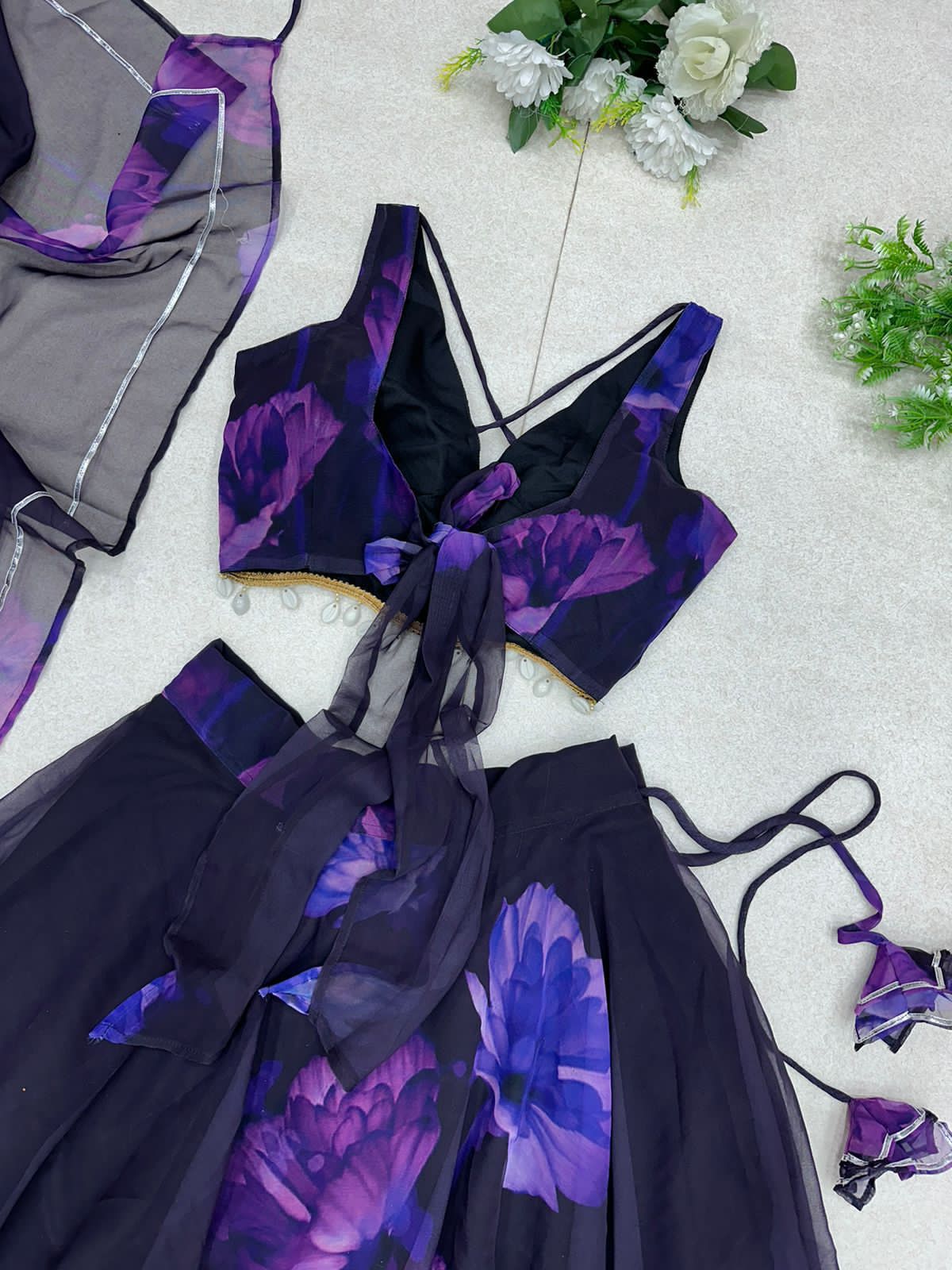 *lehnga* - Pure georgette silk digital printed lehnga 8mtr flair lehnga with canvas patta 🌸 fully stitched