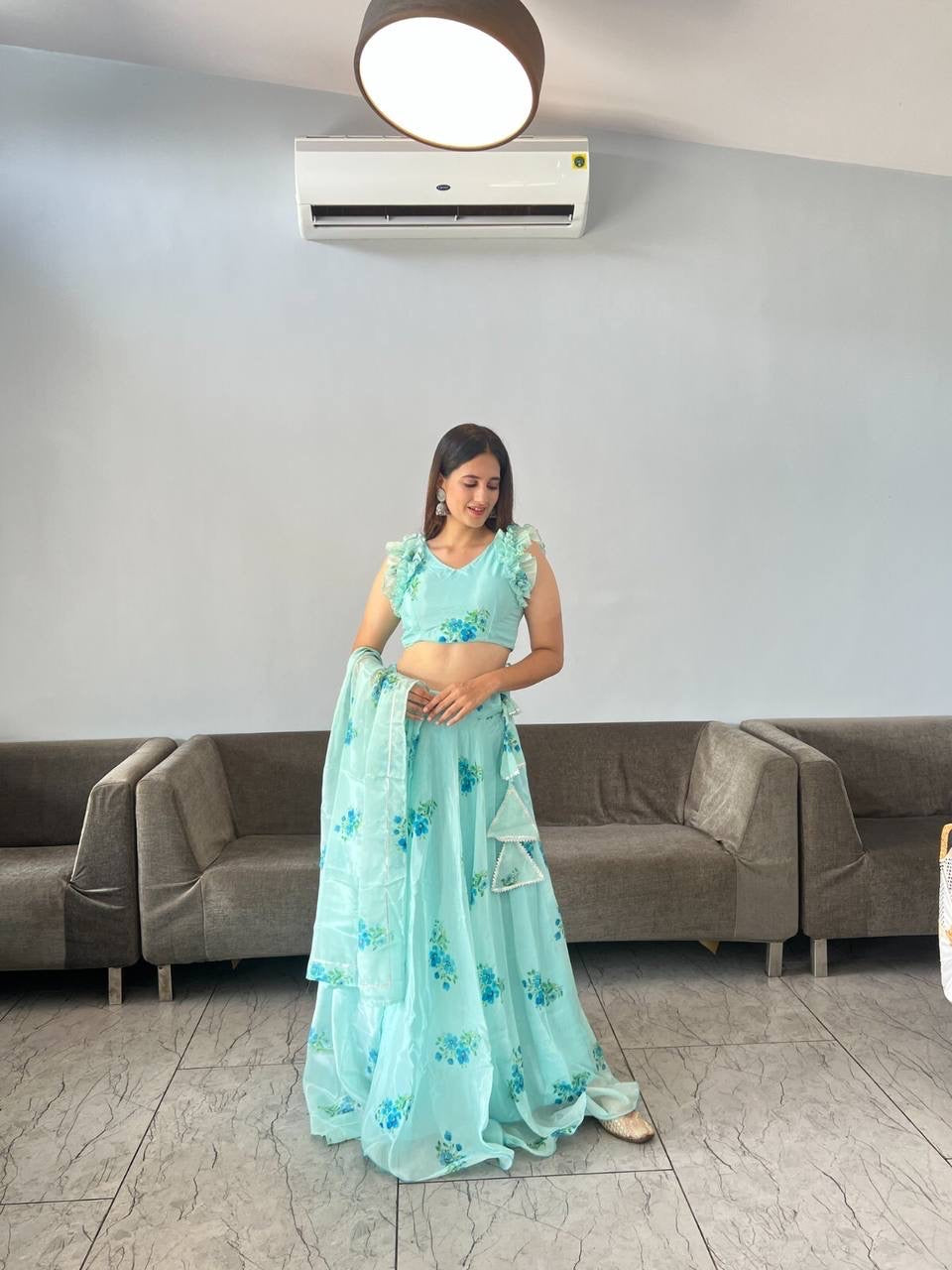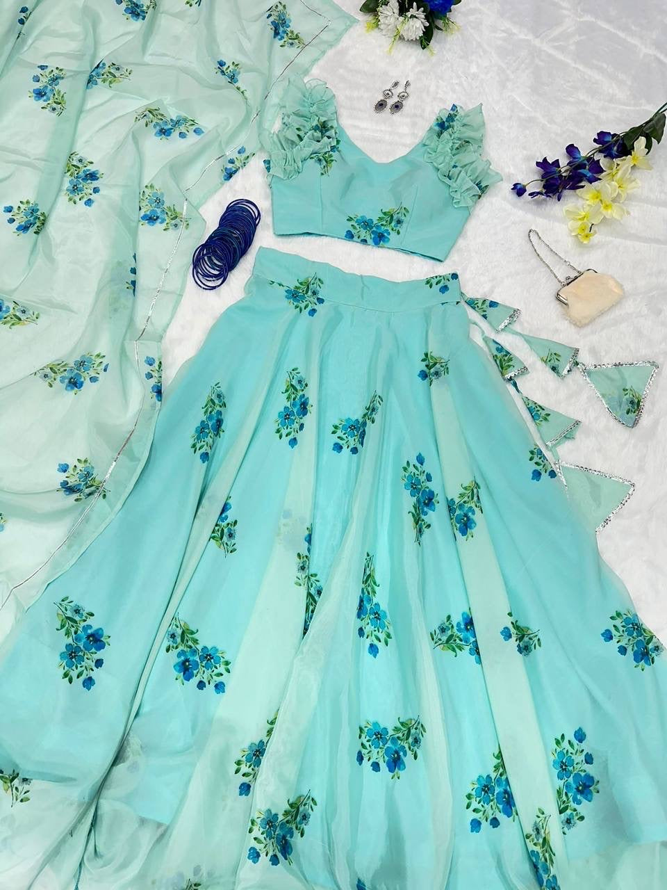 *lehnga* - Pure Jimmy organza silk digital printed lehnga. 8mtr flair lehnga with canvas patta 🌸