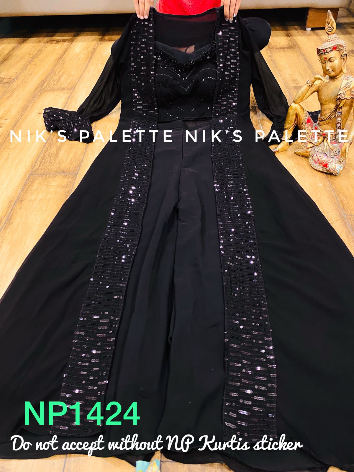 Premium Goergette crop top and palazo detailed with cutdana hand work
