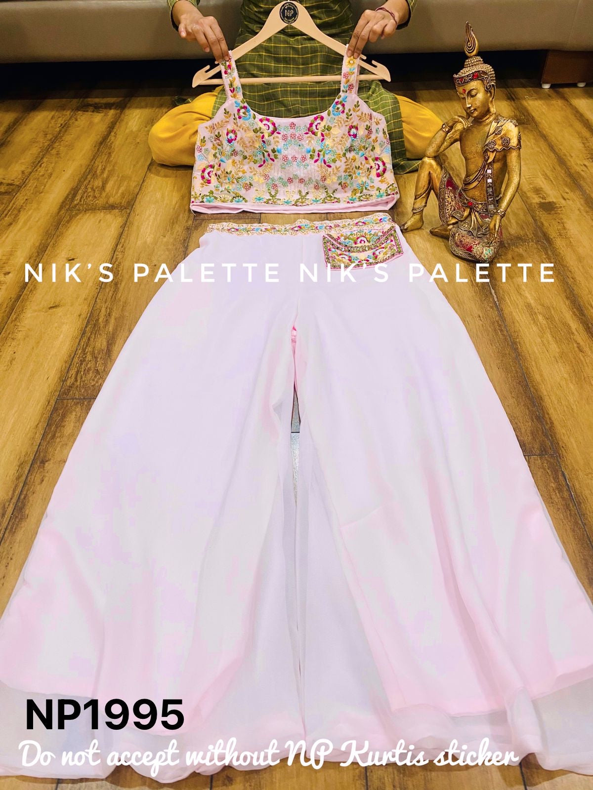 Premium Goergette flair l falir palazo with waist belt and attached pocket with embroidery and cutdana work...