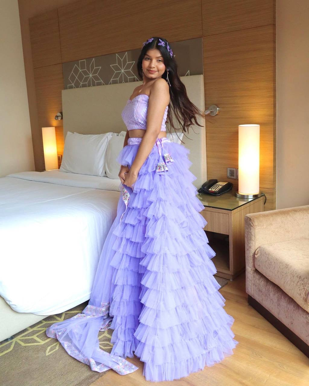 *Lehnga* - nylon butterfly frill pattern lehnga with huge flair !! Waist adjustable Dori ! 🌸