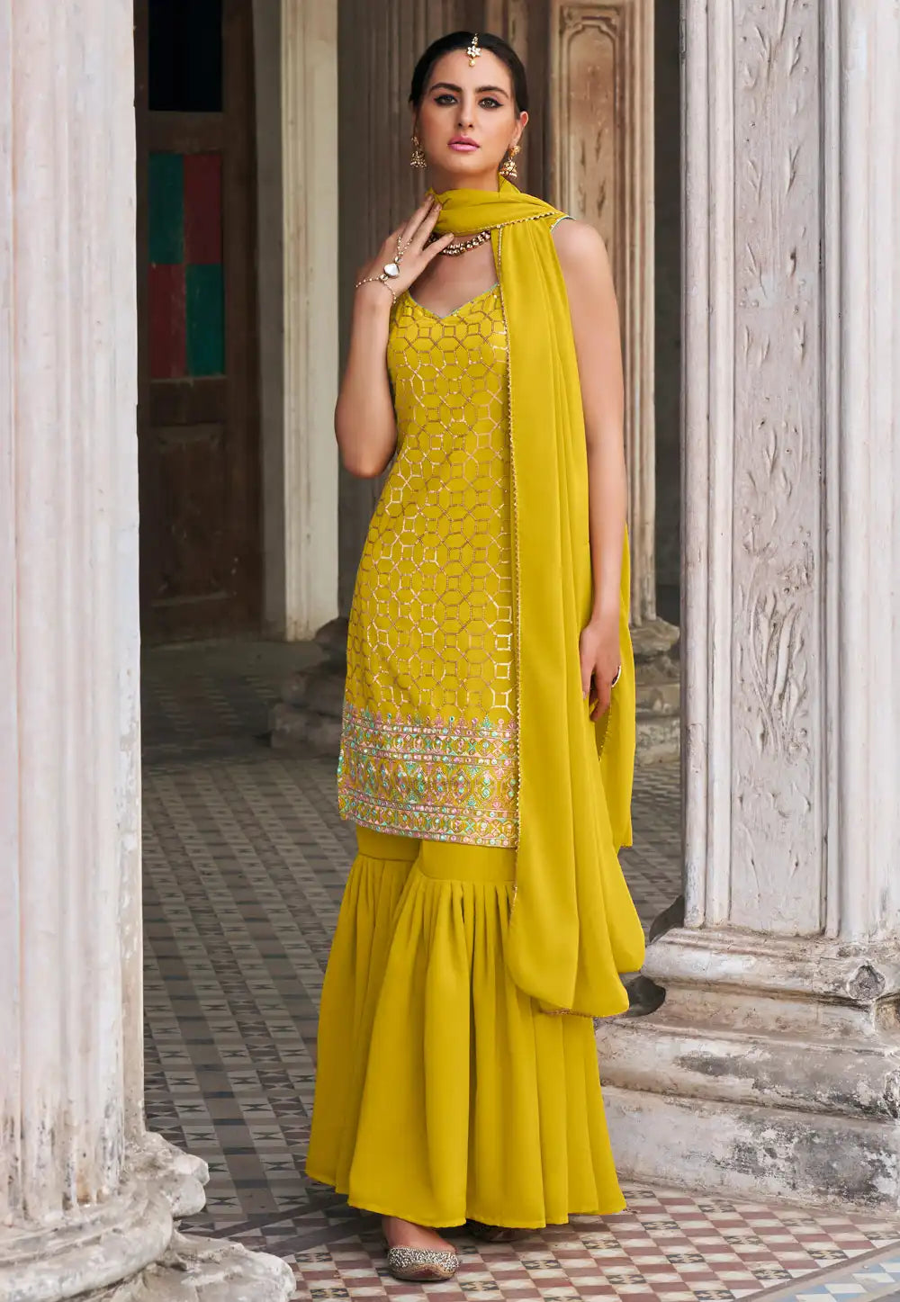 Yellow mustard georgette flared sharara (sleeves available) (plus size too)