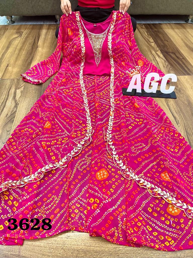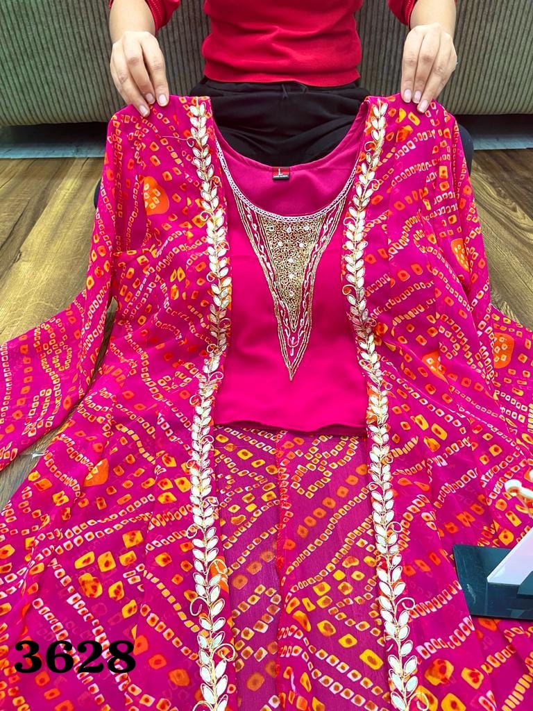 paired with Georgette bandhani print shrug with gota Patti work all over