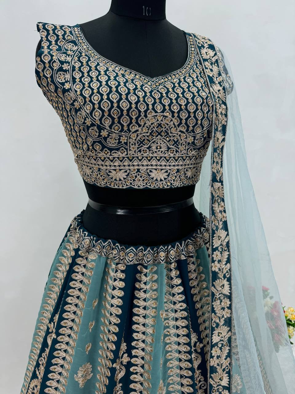 #LEHENGAS WORK : HEAVY CHINE STITCHED WORK WITH DIMOND HAND WORK *CAN-CAN, CAN-VAS, 3 MTR FLAIR*