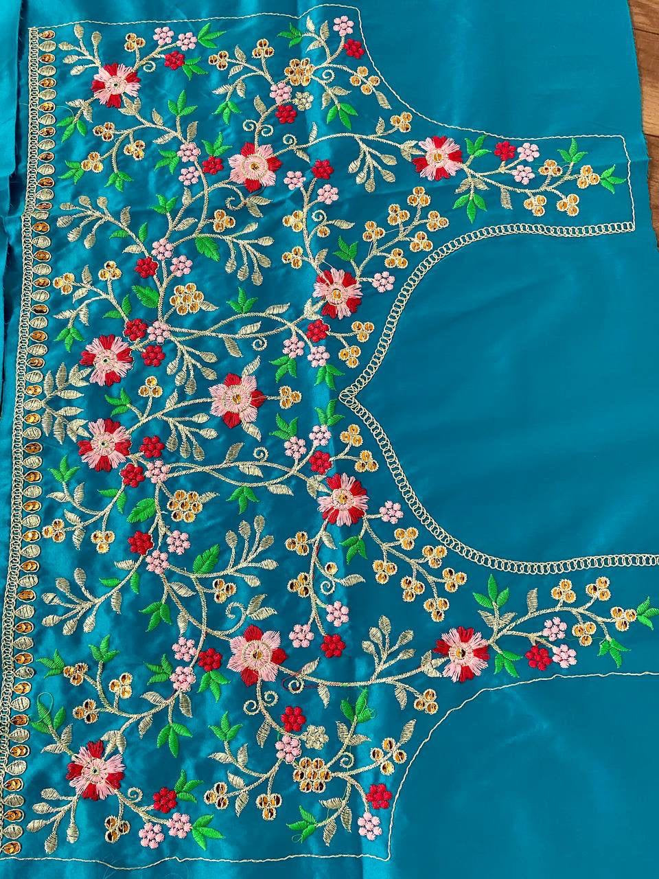💃 *Blouse Work* :- Sequence 5mm, Multi Niddle Work, Cording Work, Embroidery Work.