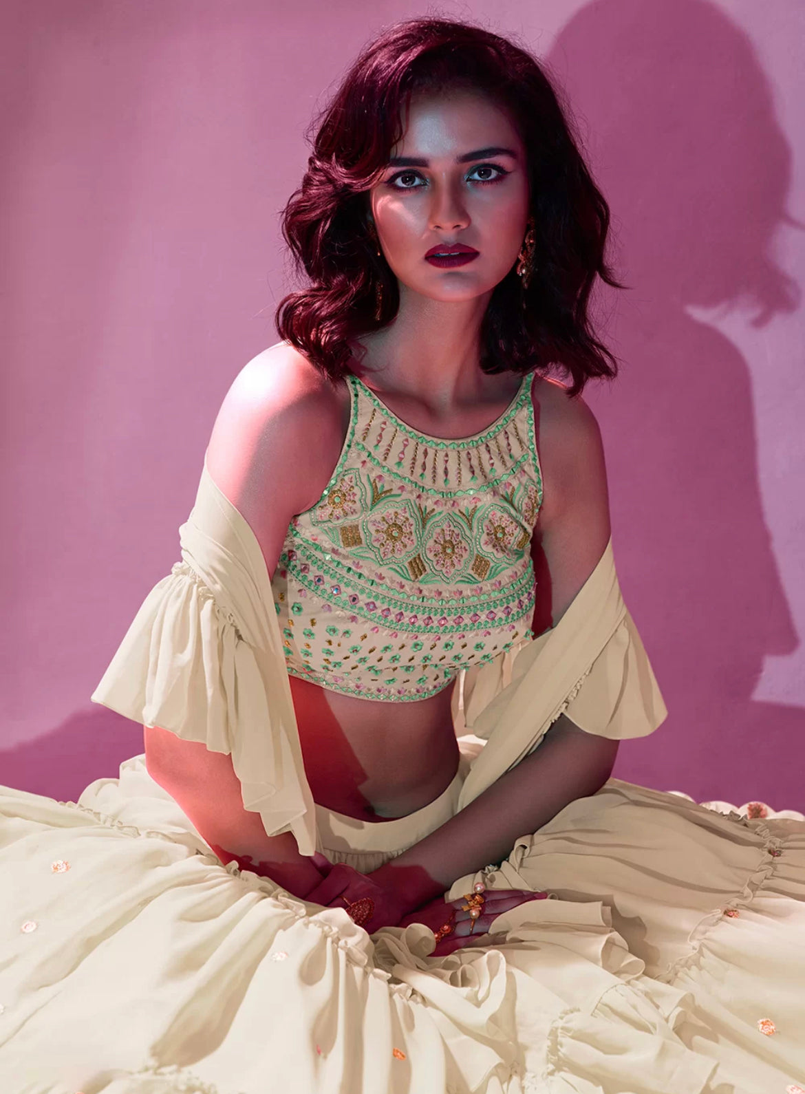 Ariana - off white Lehenga with ruffle dupatta and belt