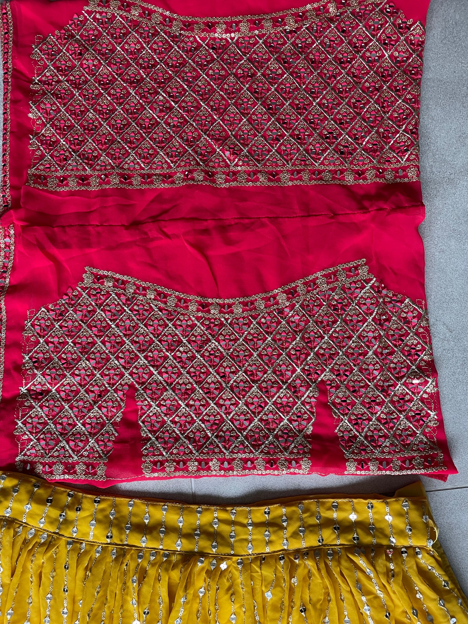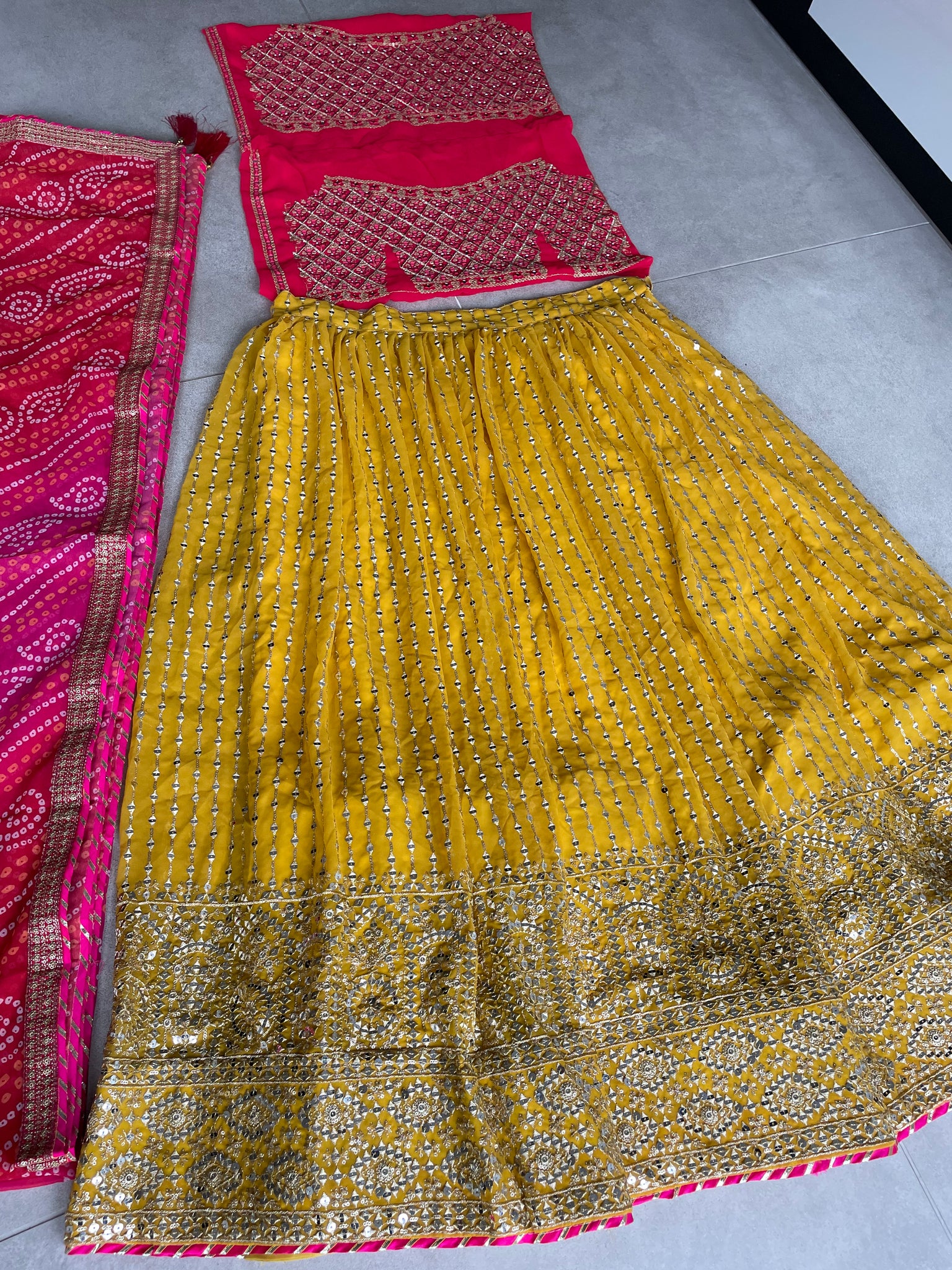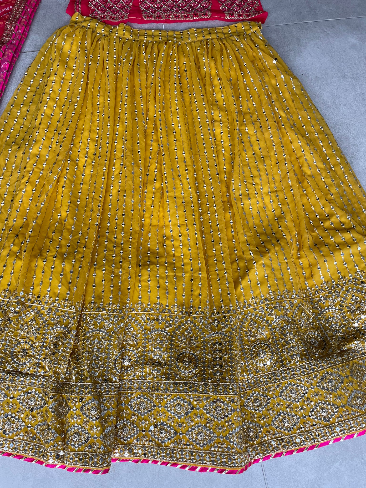Georgette lehenga with sequins embroidery semi stitched. Blouse piece and dupatta.