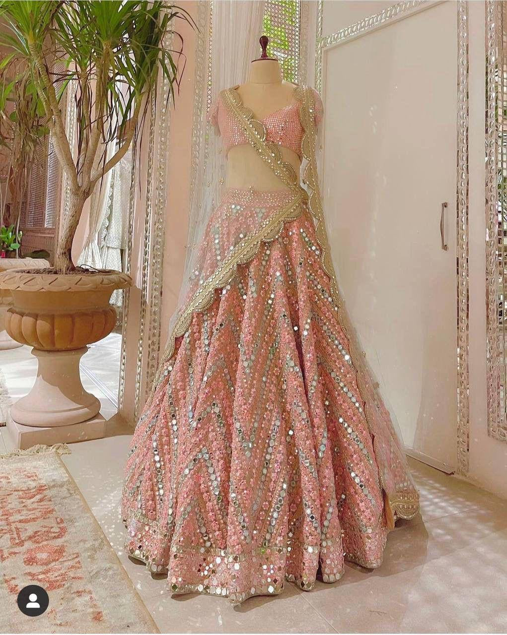⏭ Organza lehnga with heavy pagdi work + foil mirror work