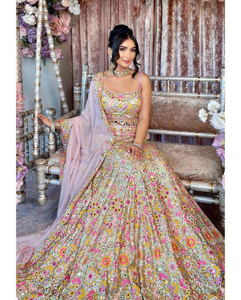 Lehenga work-Real Mirror Embroidery Sequins Cut Work With Cancan & Canvas Patta