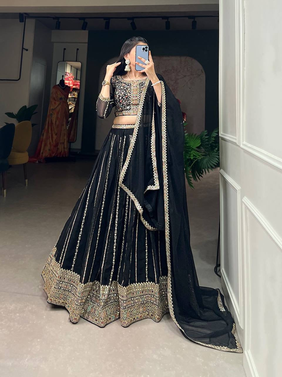 Black embroidered Lehenga (skirt stitched)