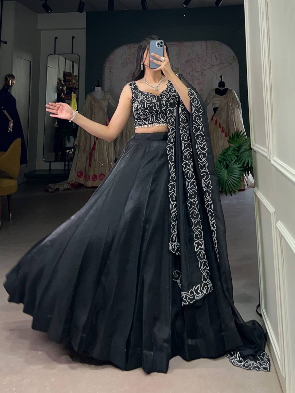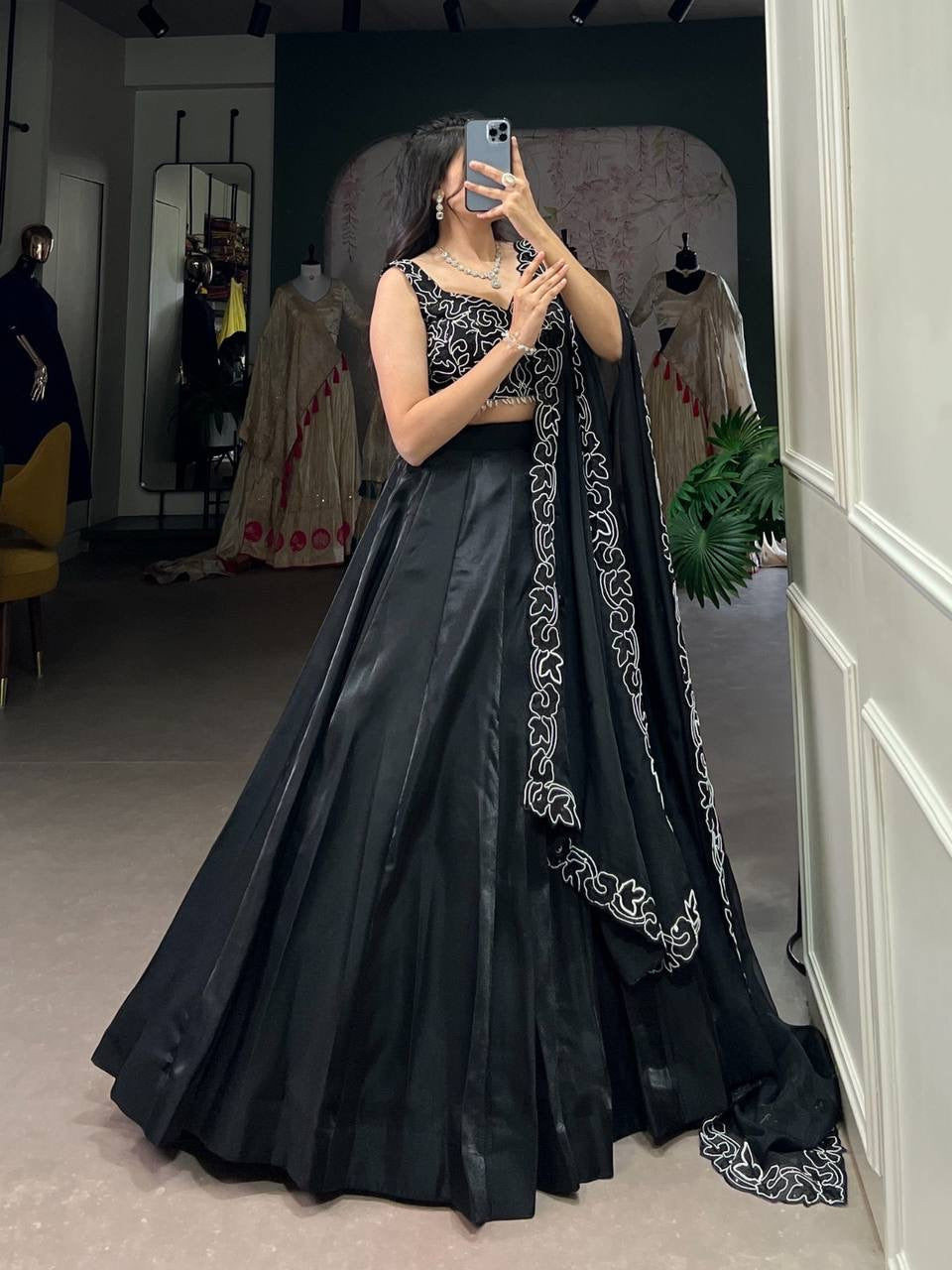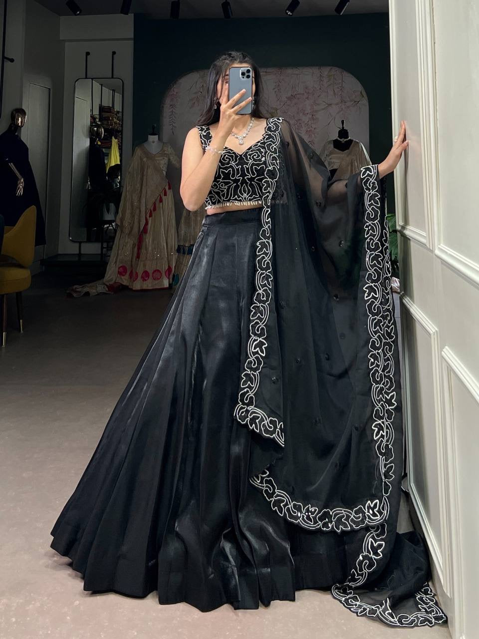 Dupatta Work : Pearl Coding And Sequins Embroidery Work Lace Border With Sequins Butties All Over