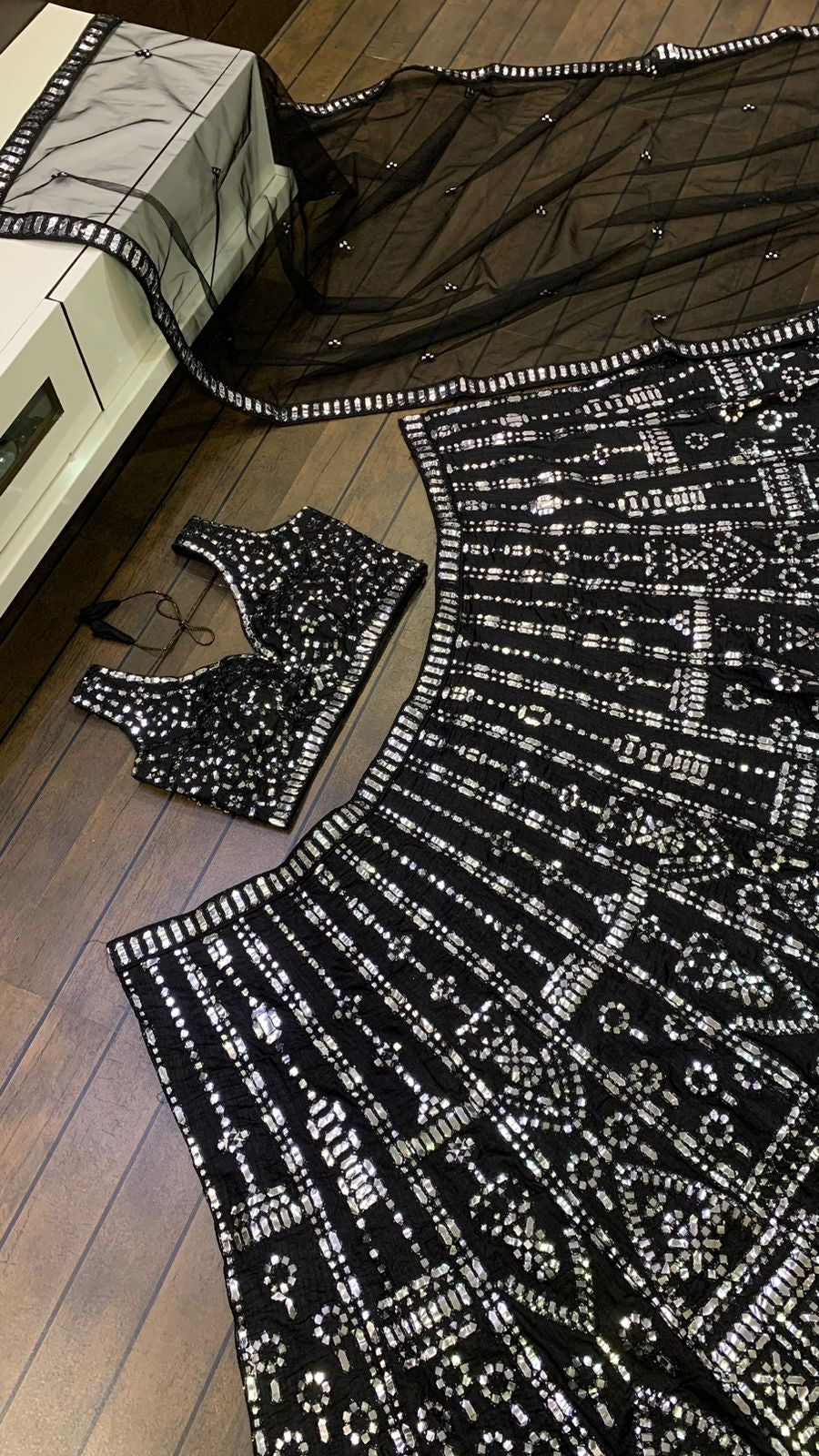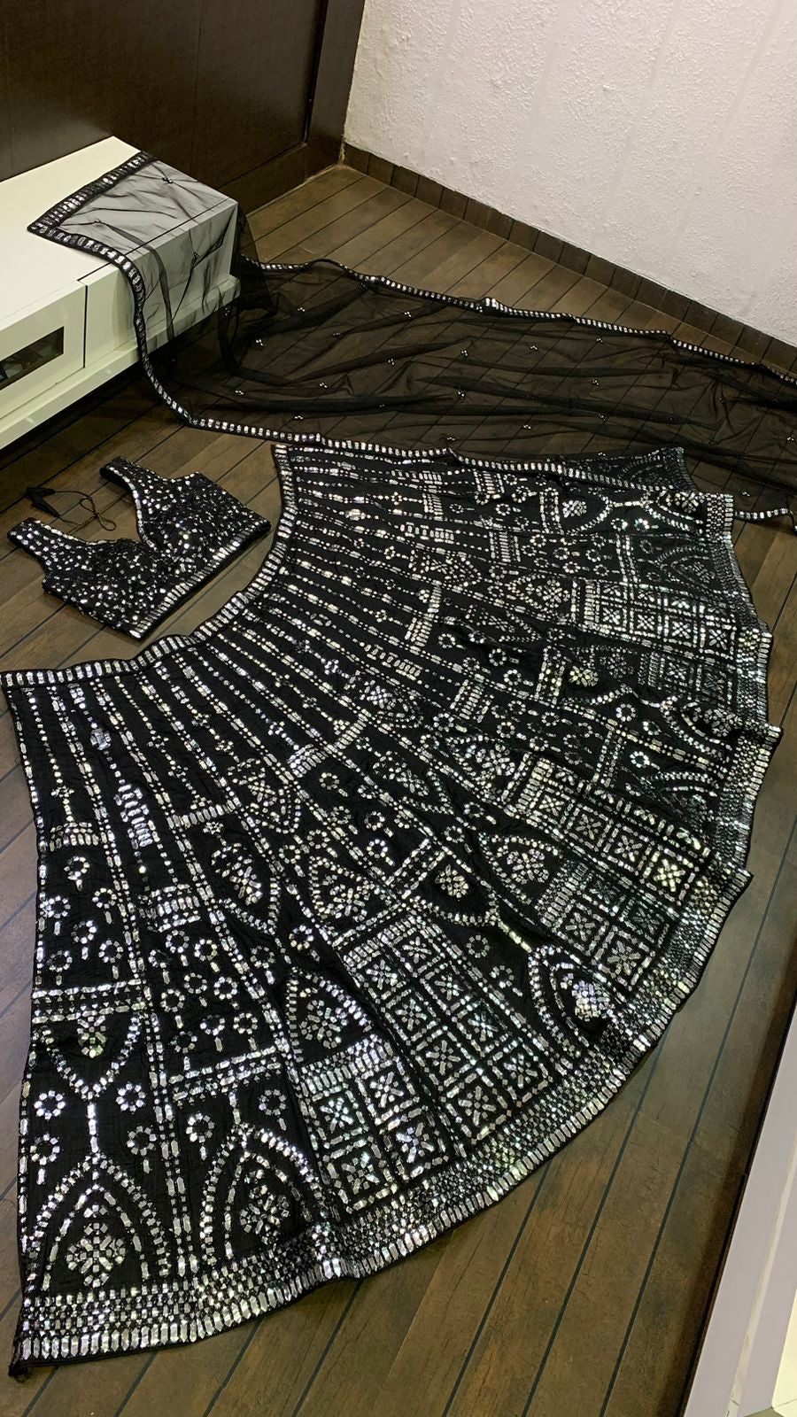 ⏭️ Heave slub silk lehnga with paper mirror & thread work