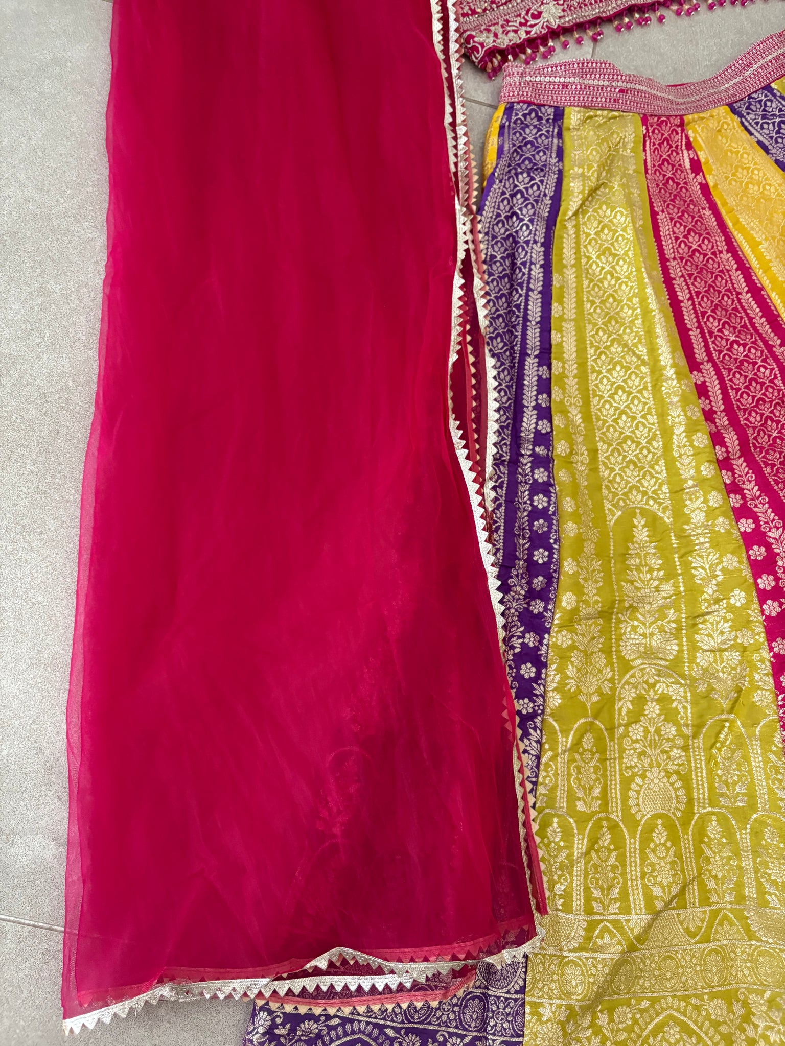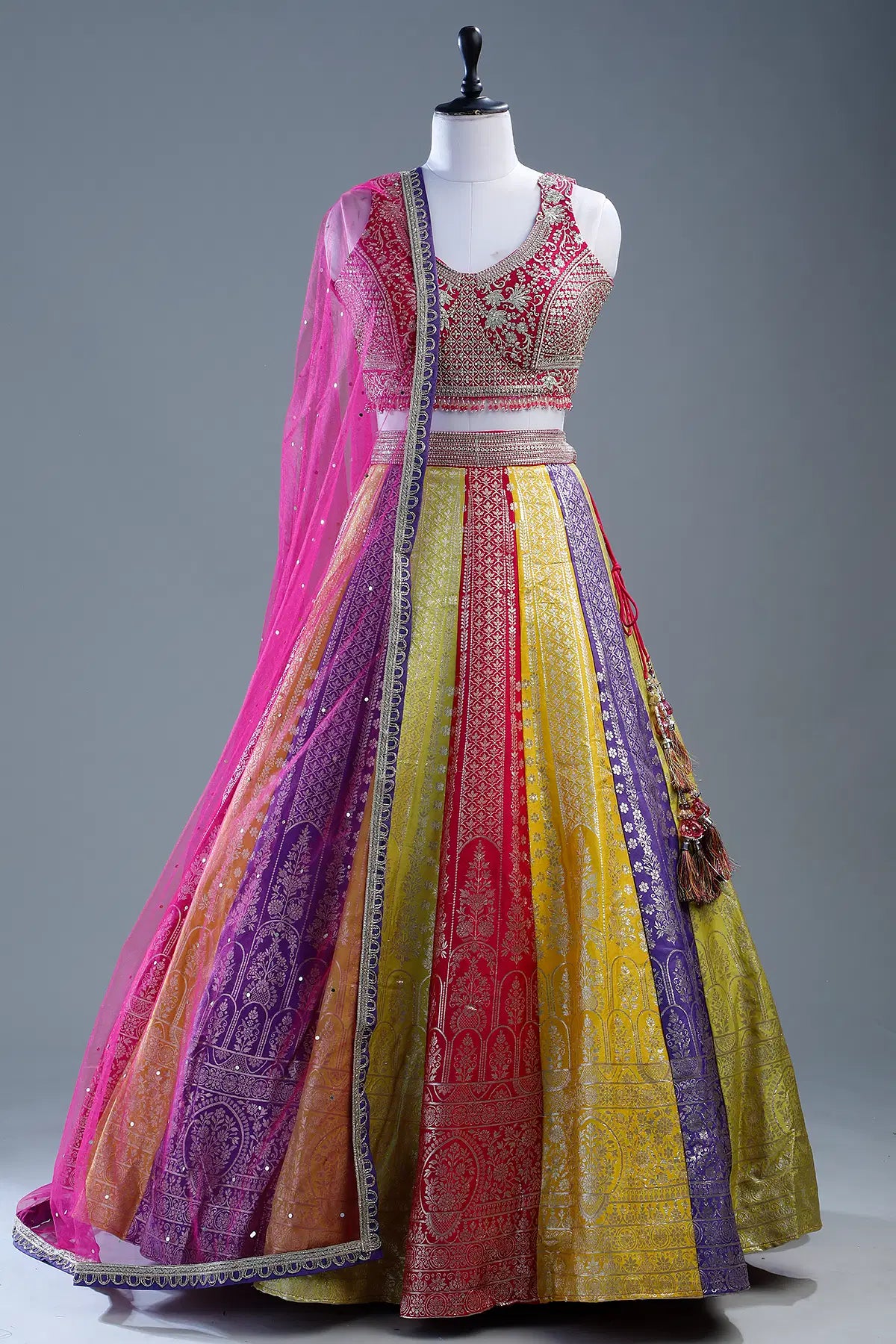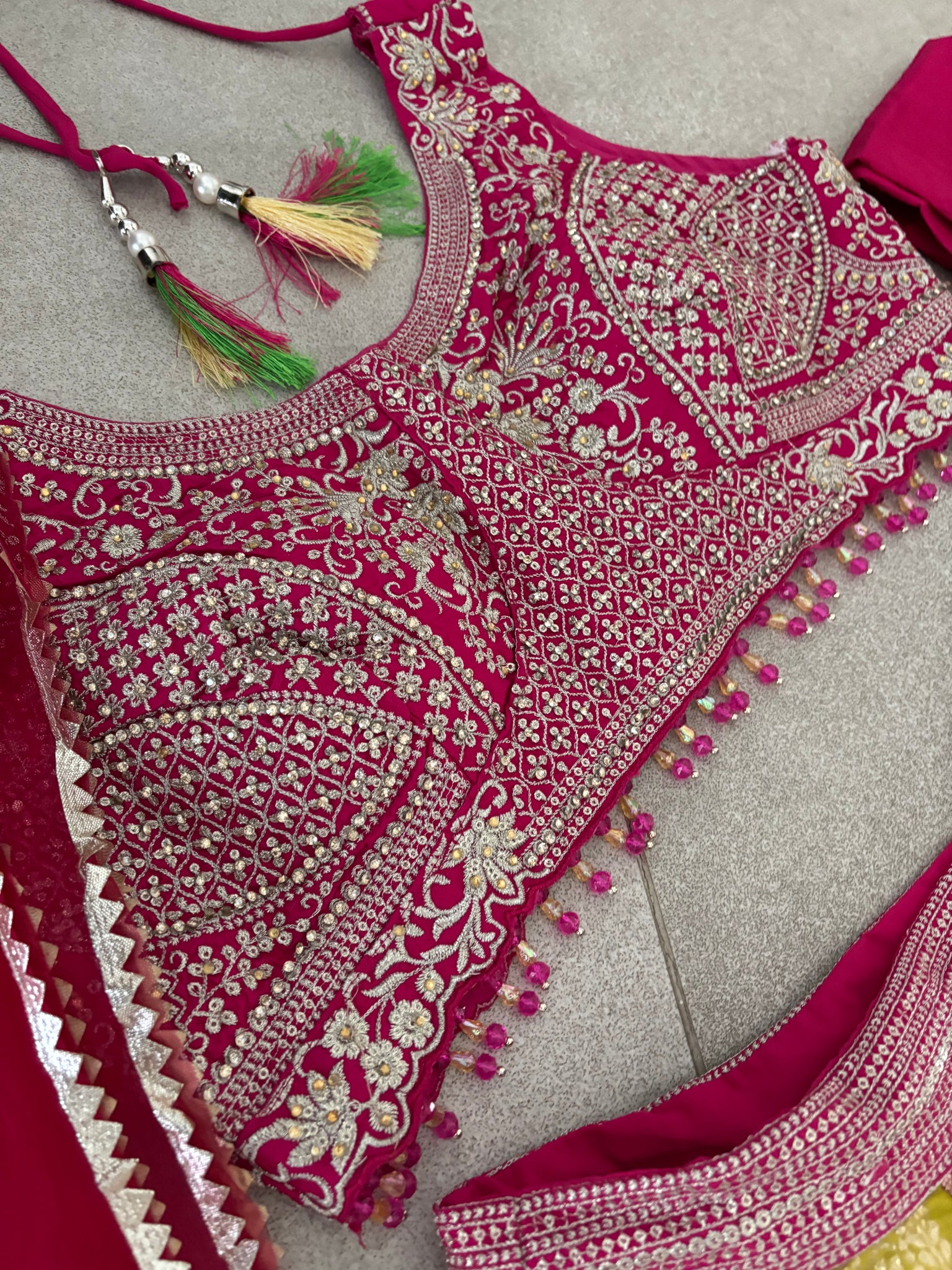Embroidered blouse with sequins and thread work and net dupatta.