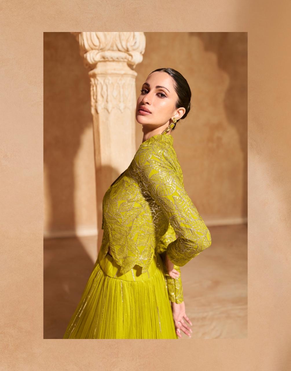FABRIC - REAL PREMIUM CHINON SILK / VISCOS JACQUARD SKIRT( FRONT AND BACK EMBROIDERED WITH CANCAN )