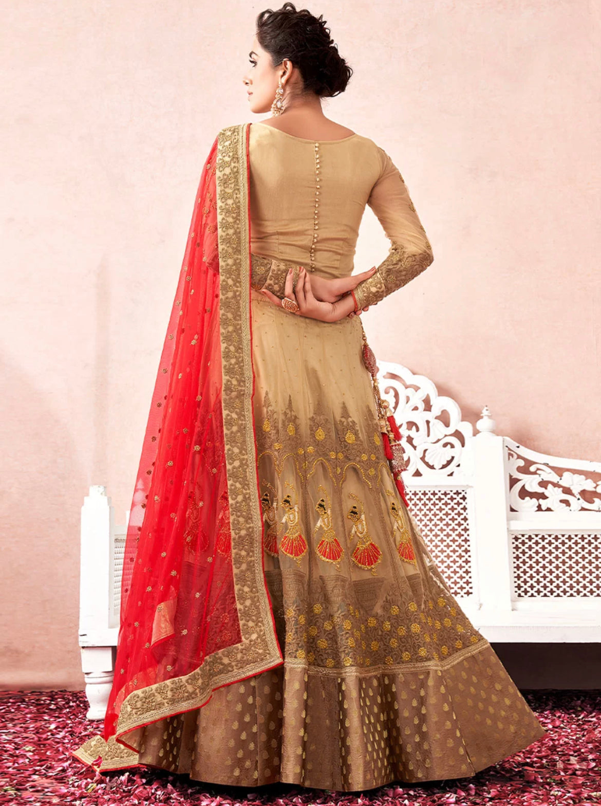 Dupatta fabric: maroon net with all over zari work and diamonds