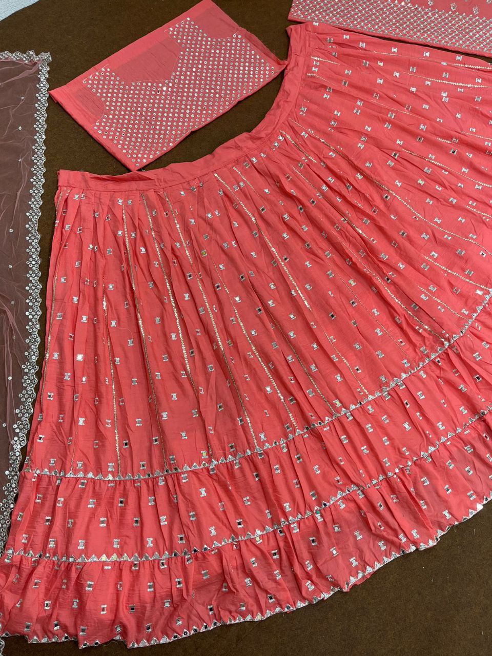 #LEHENGAS WORK : HEAVY REAL MIRROR WORK WITH *RUFFLE 3 MTR FLAIR* *CAN -CAN / CAN VAS*
