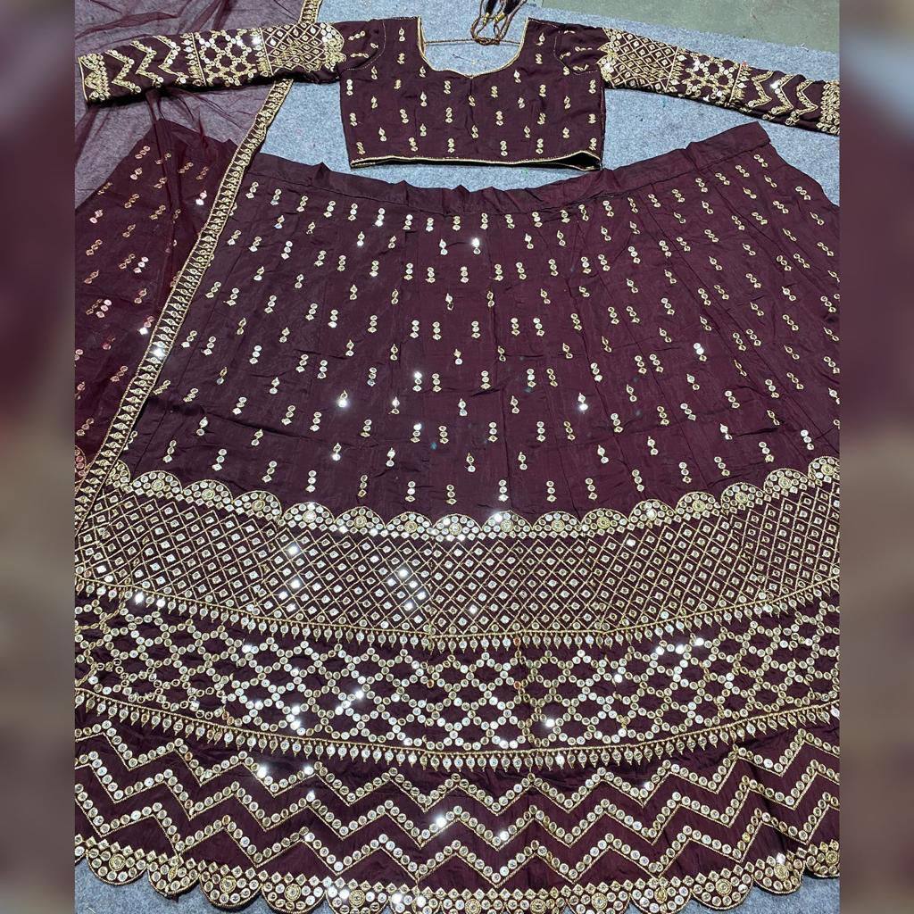 Dark Coffee Colour Embroidered Attractive Party Wear silk Lehenga choli has a Regular-fit and is Made From High-Grade Fabrics And Yarn