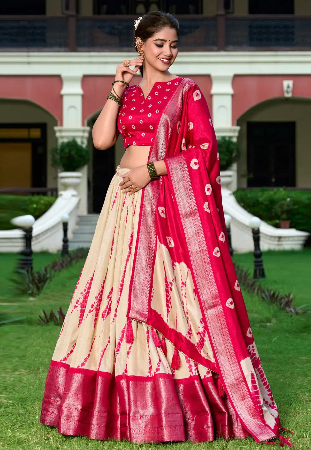 Lehenga Work : Shibori Print With Zari Weaving Border
