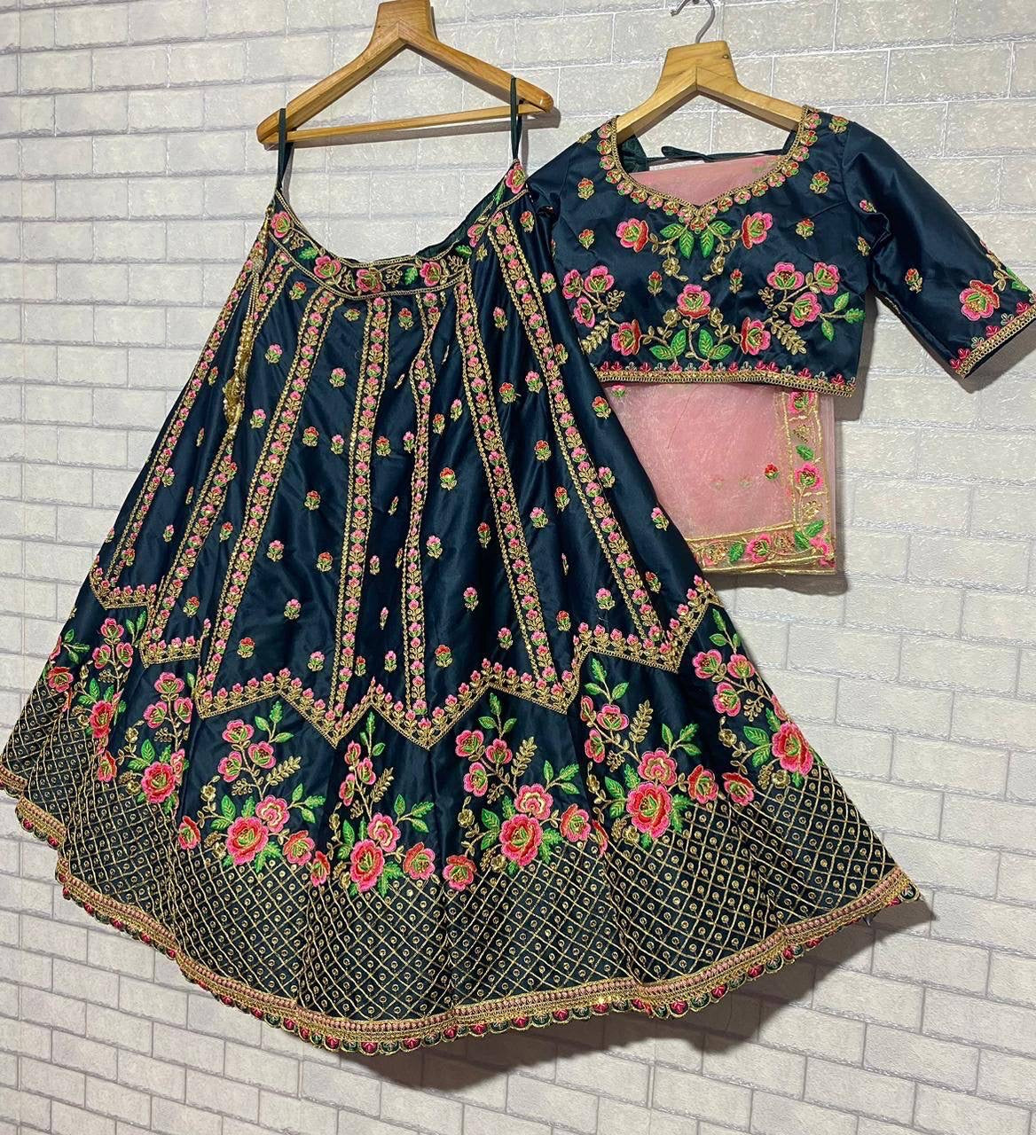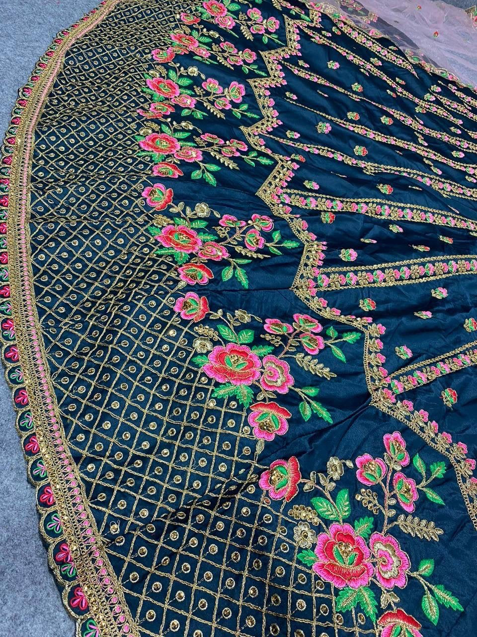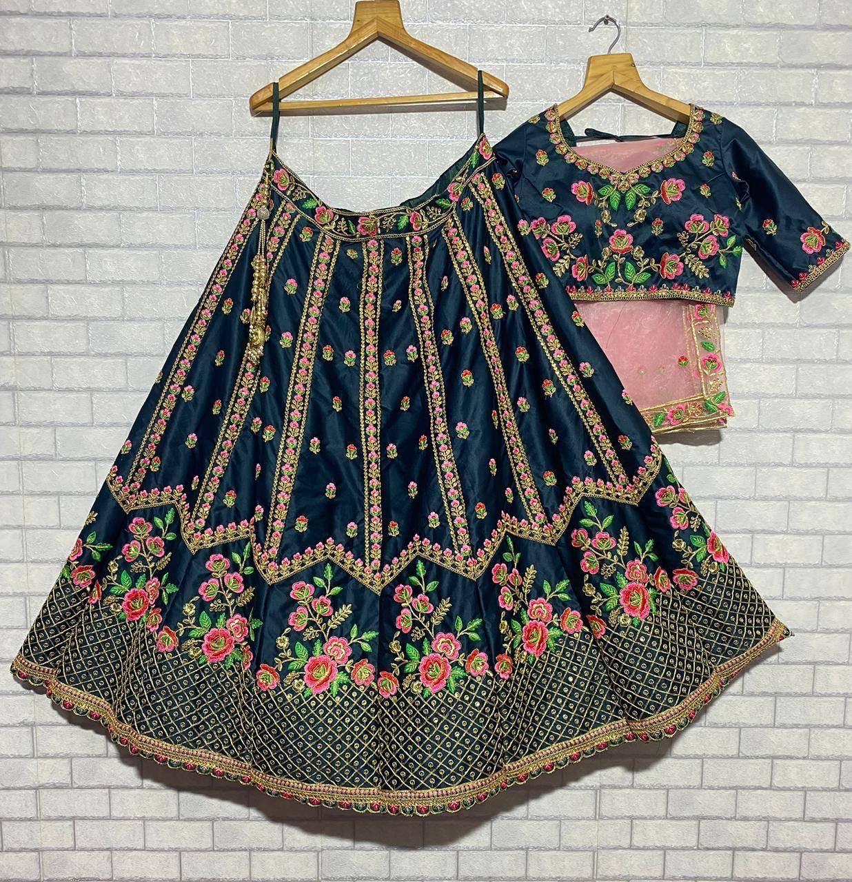 Dusty dark green Colour Embroidered Attractive Party Wear Silk Lehenga choli has a Regular-fit and is Made From High-Grade Fabrics And Yarn.