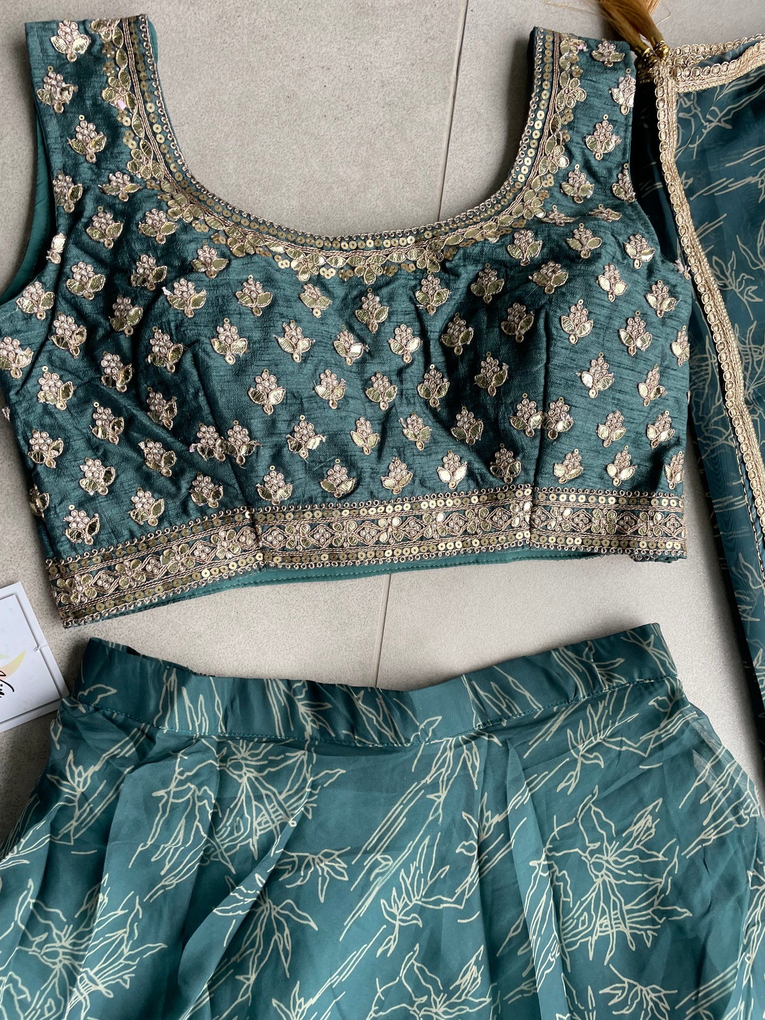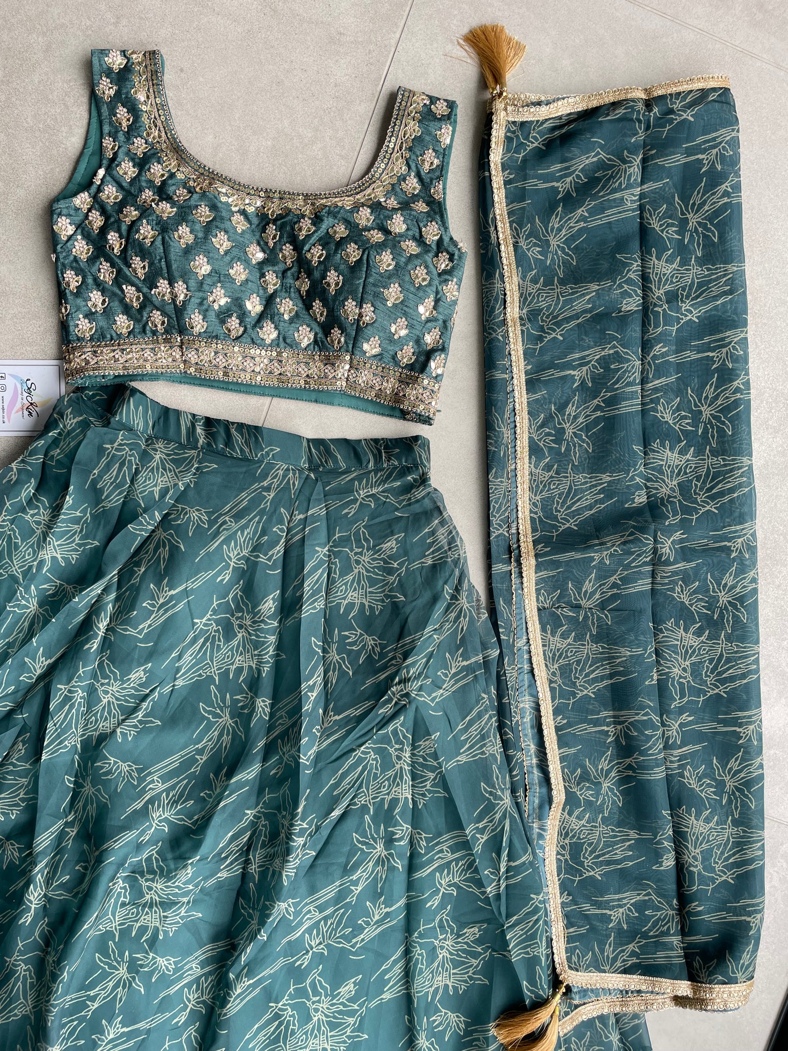 Fabric - Banglori Silk Blouse / Pure Orangaza Silk Lhengha ( Slevees Attached ) ( Front And Back Embroidered With Cancan )