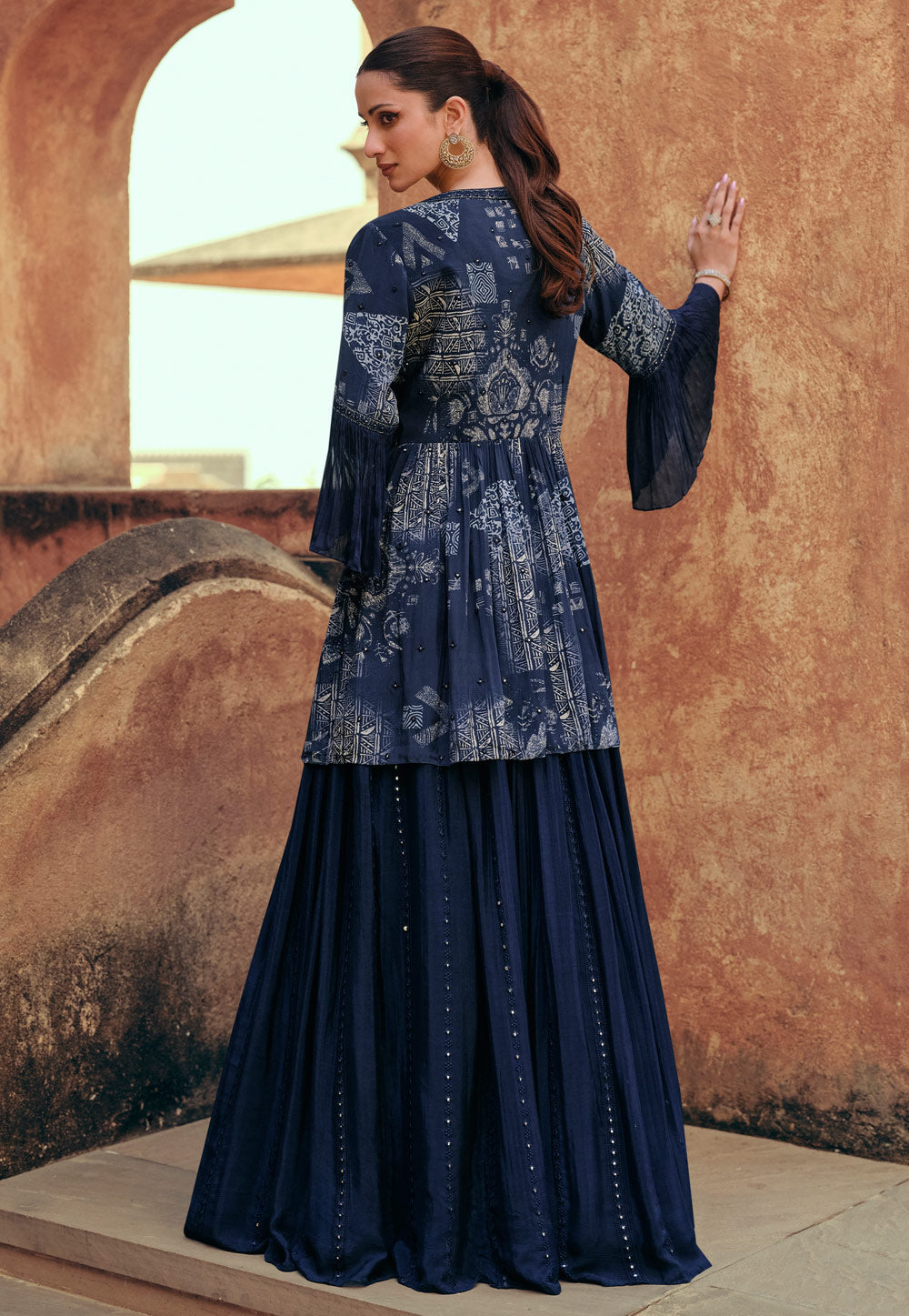Janisha -  navy blue chinon silk Lehenga with short jacket