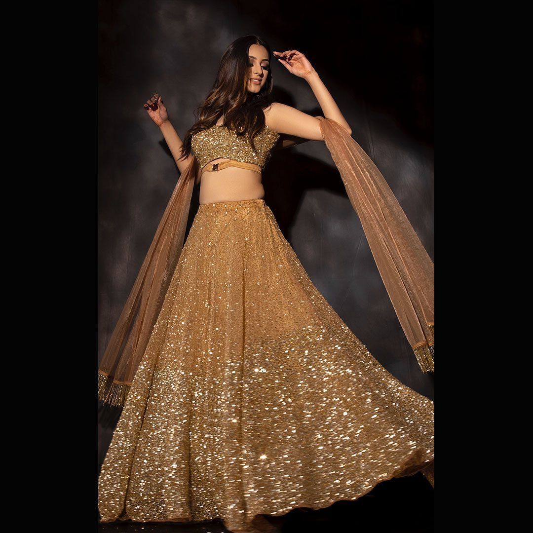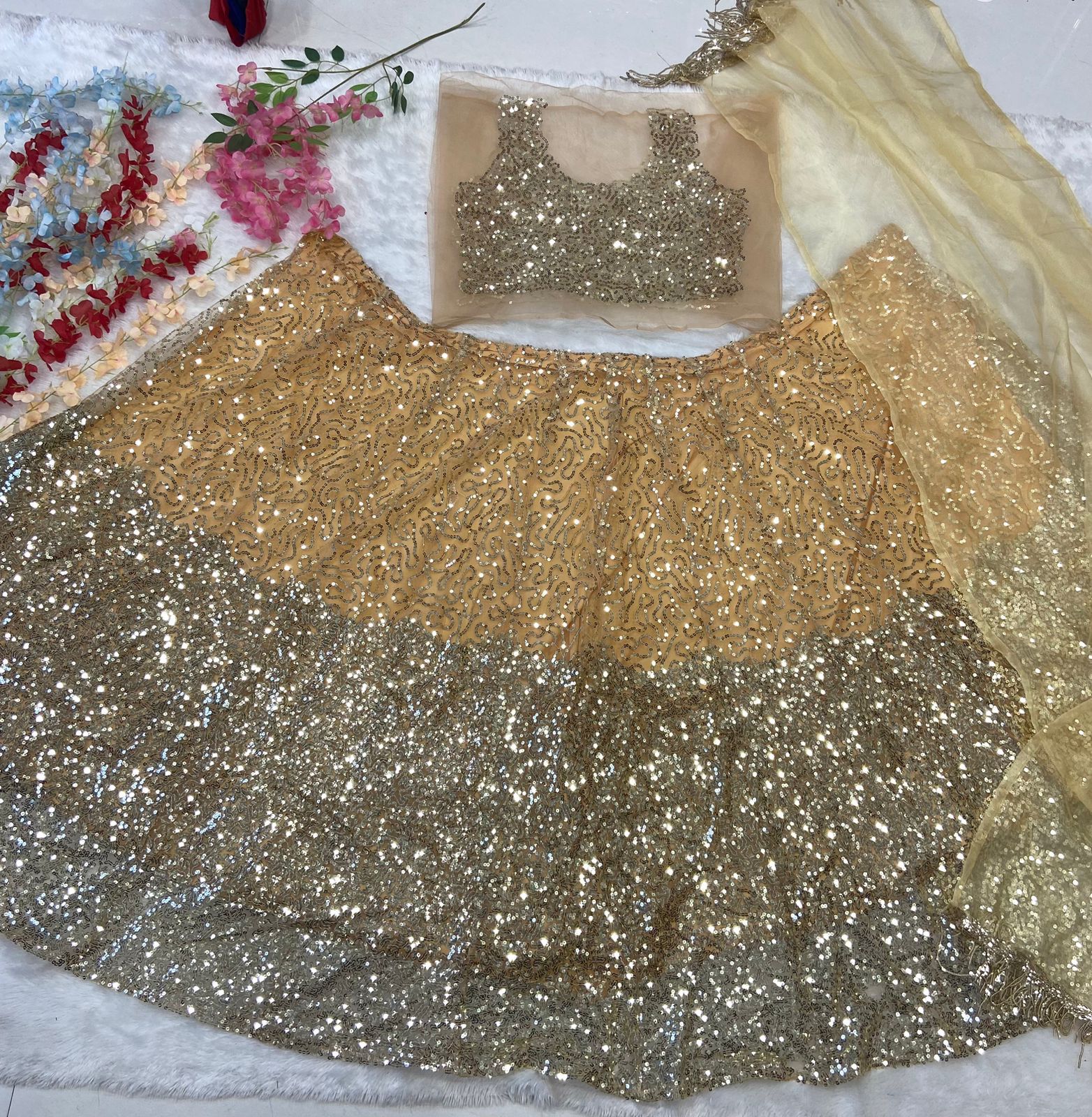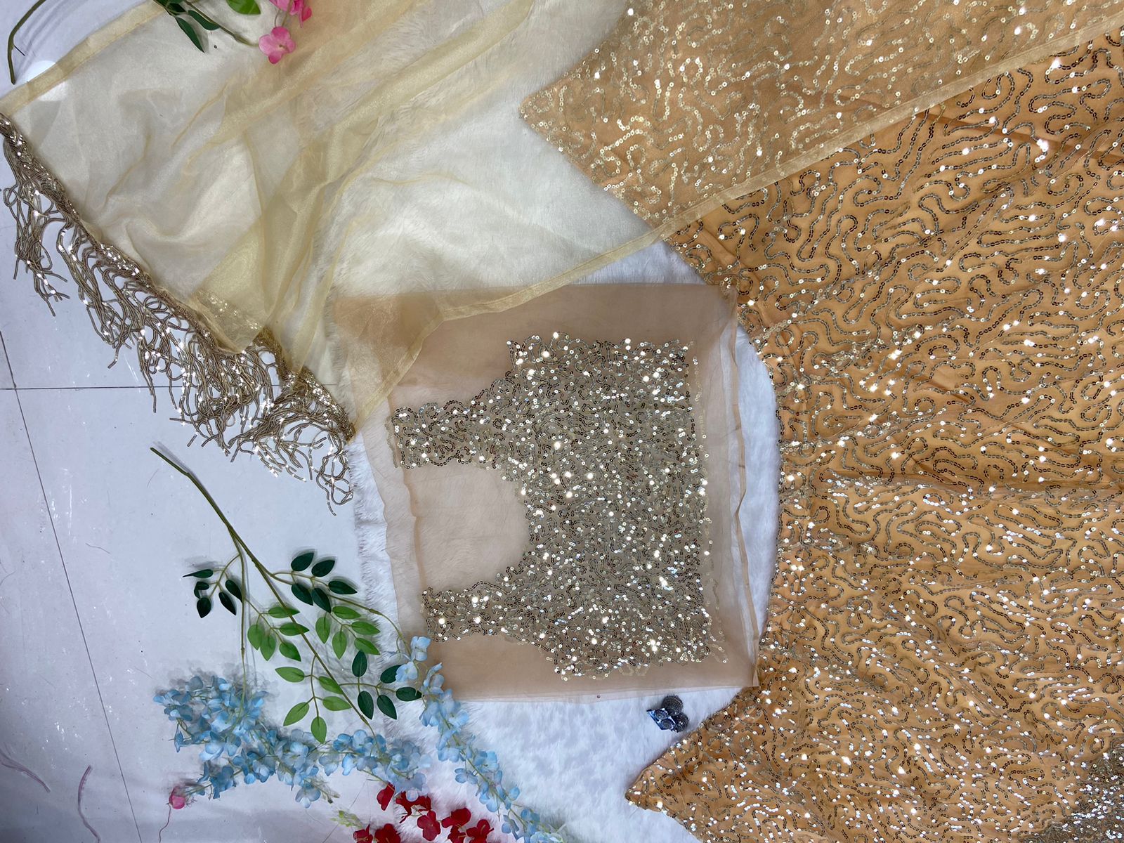 Unstitched blouse piece in diamond silk with heavy sequins work all over, both side front and back.