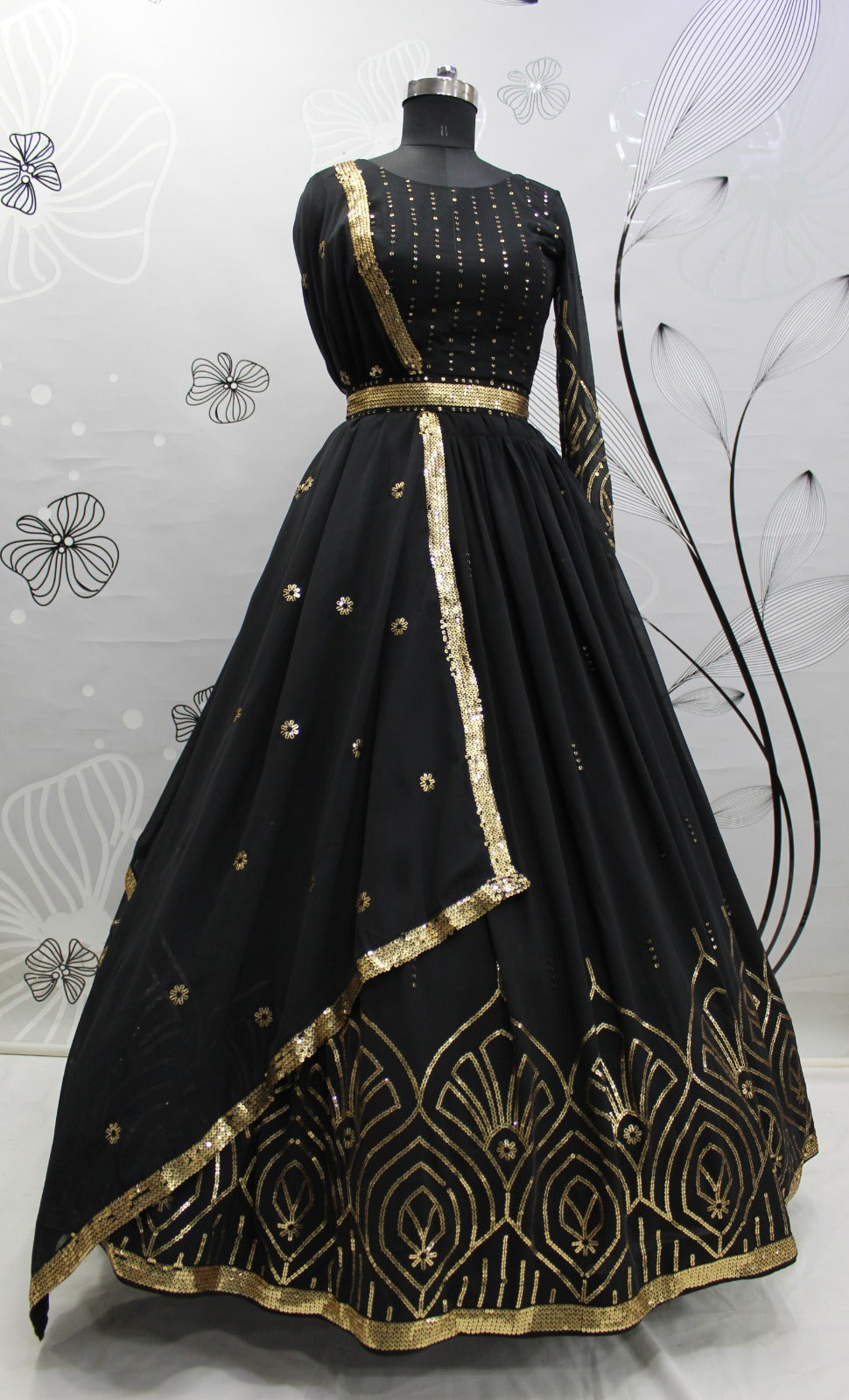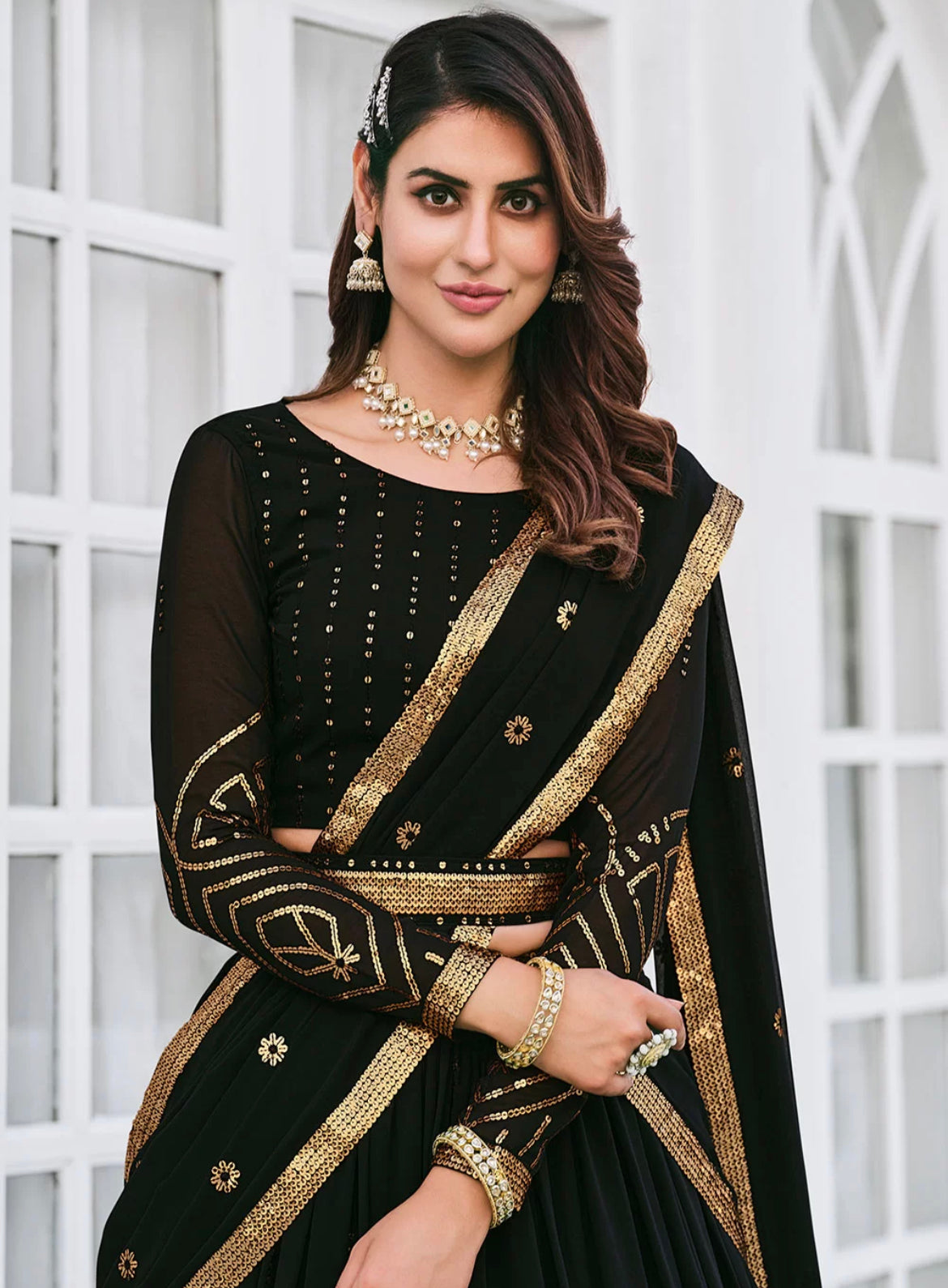 Misha collection vol 3 - exquisite black and gold long sleeves designer Lehenga