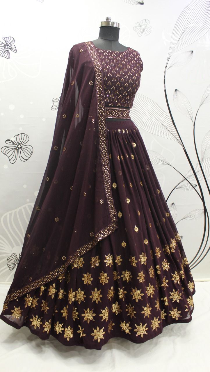 Semi stitched georgette Lehenga supported up to waist 42 inches and length 42 inches.
